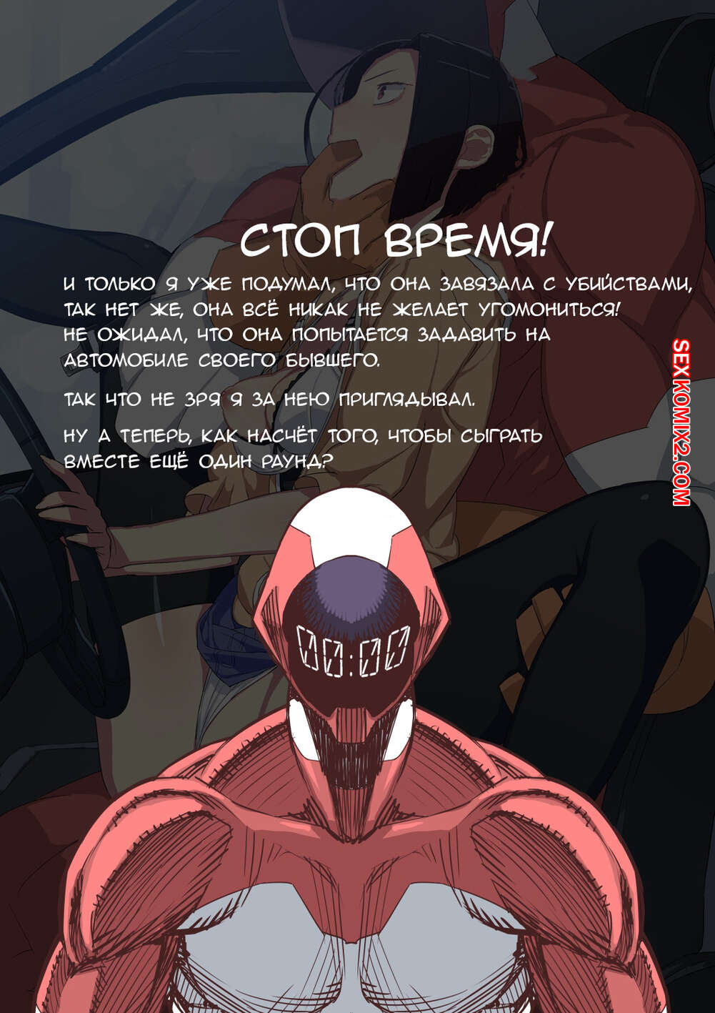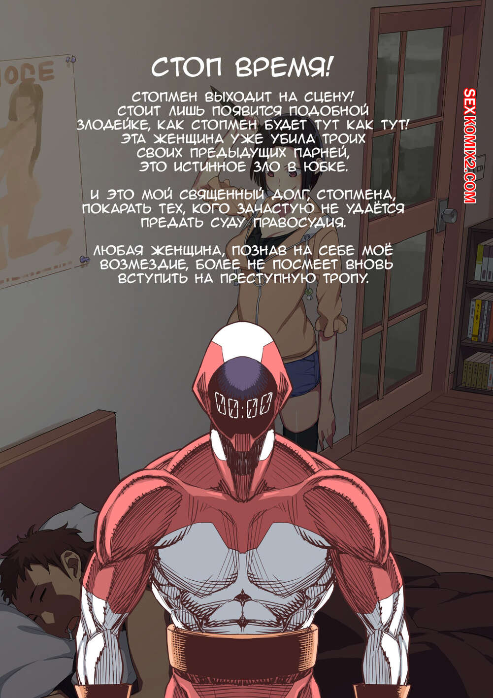 Порно комикс Стопмен. Железная длань правосудия. Tekken Seisai Stopman. Alan Smithee Парень в крутом костюме стал путешествовать во времени, чтобы останавливать красотку от убийства своих бывших парней. Он появляется в самый нужный момент и начинает трахать ее, чтобы она забыла что хотела и исчезает. И так по кругу.