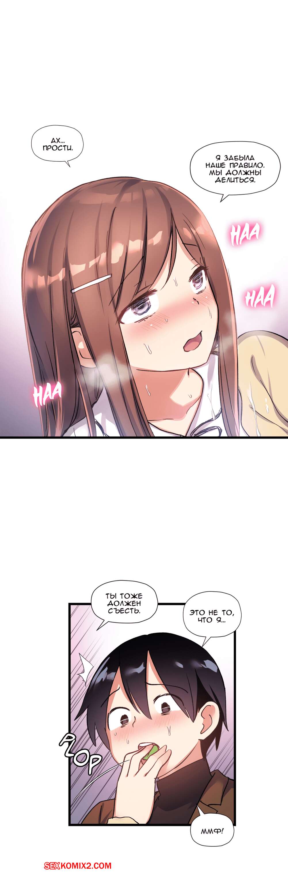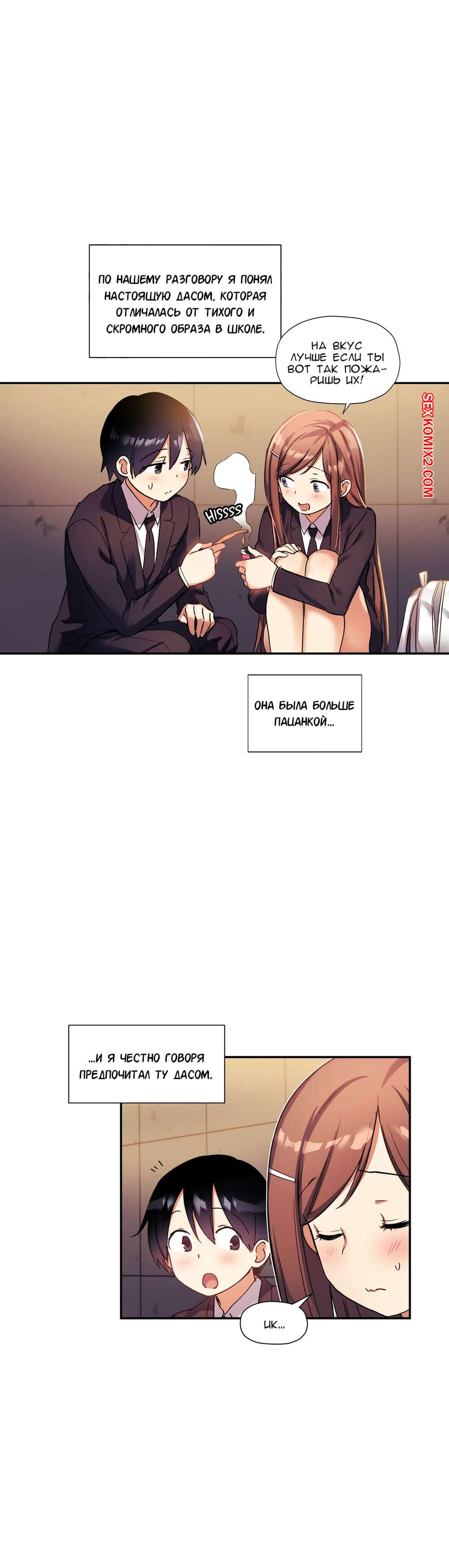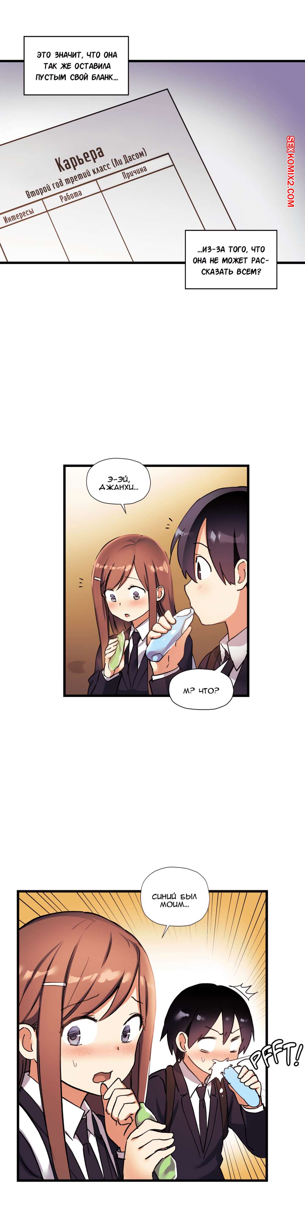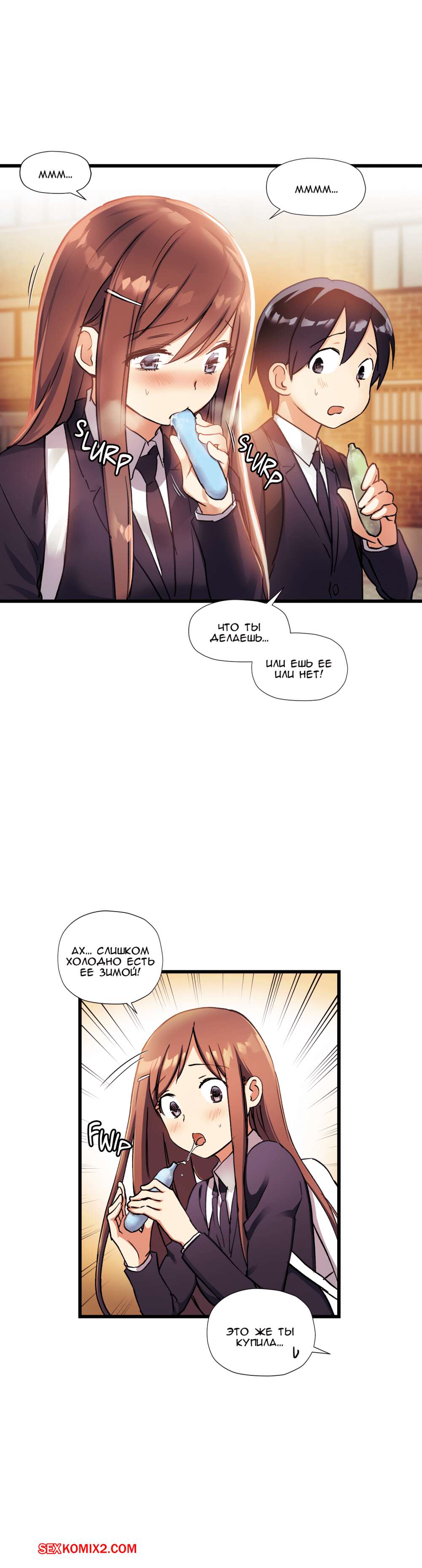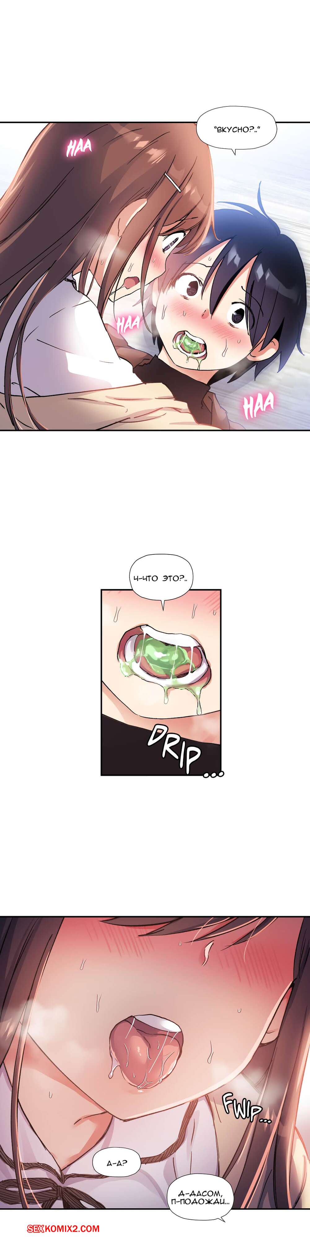 Порно комикс Под наблюдением моя первая любовь и я. Части 30 и 31 и 32 Парнишка с девушкой не поделил конфету и они столкнулись своими губами и поцеловались. Оба так сильно возбудились, особенно девушка, что она решила достать член друга и принялась сосать.