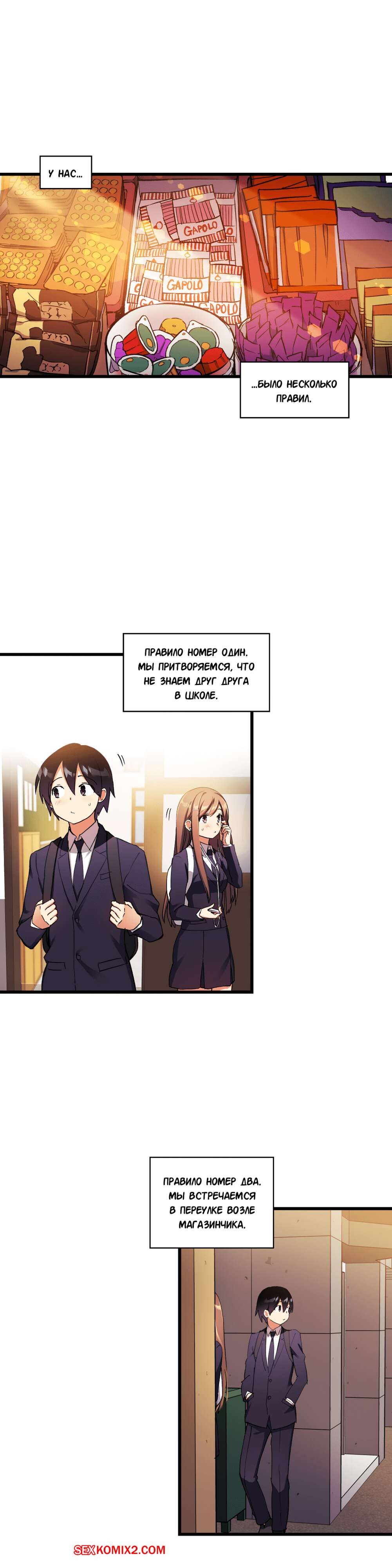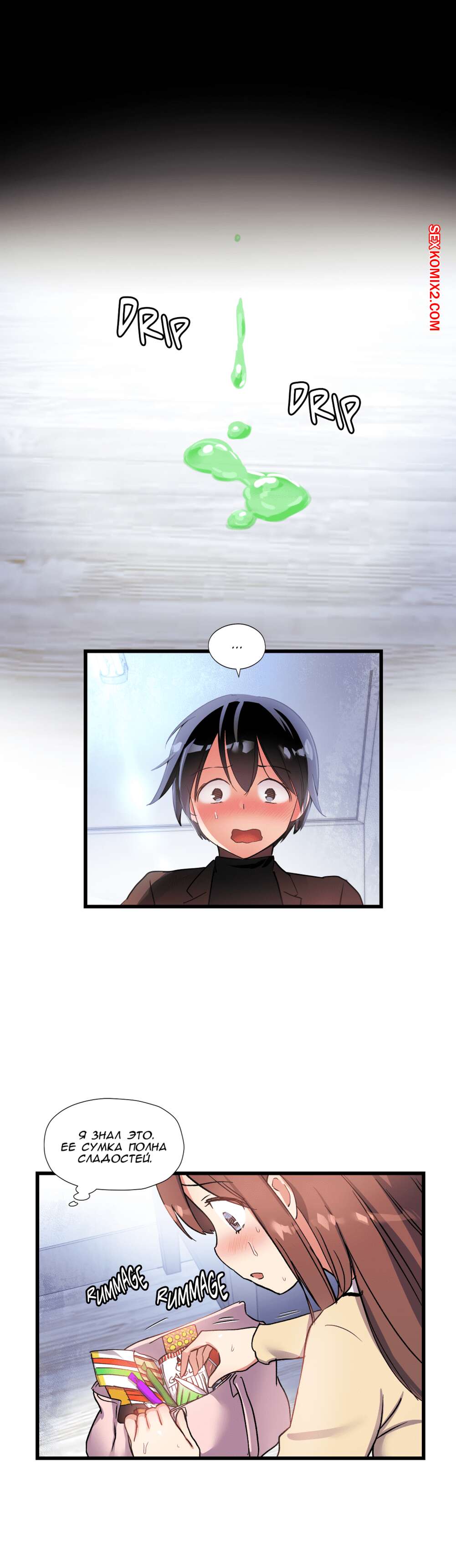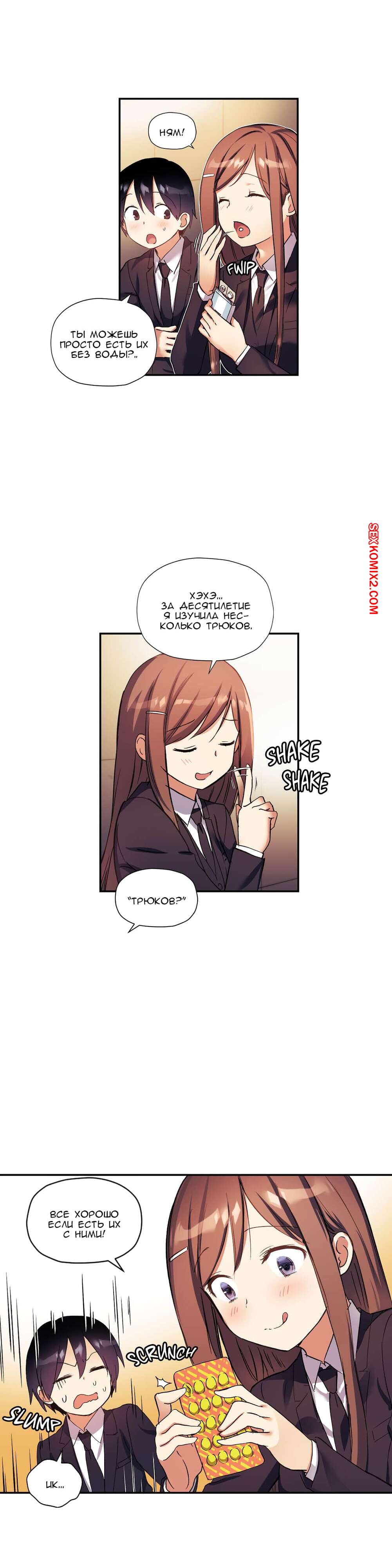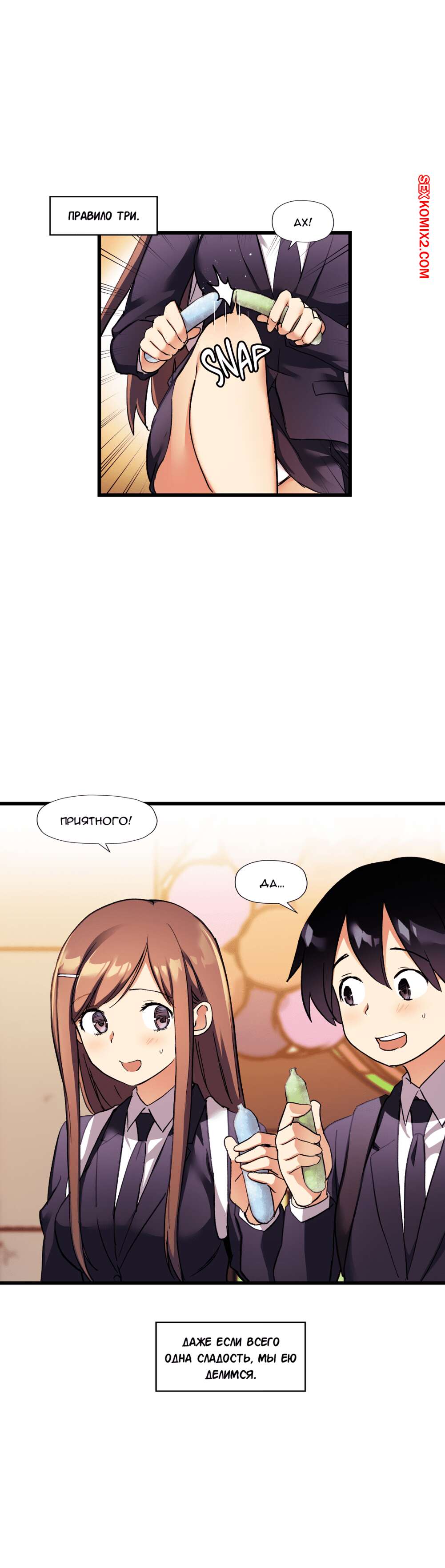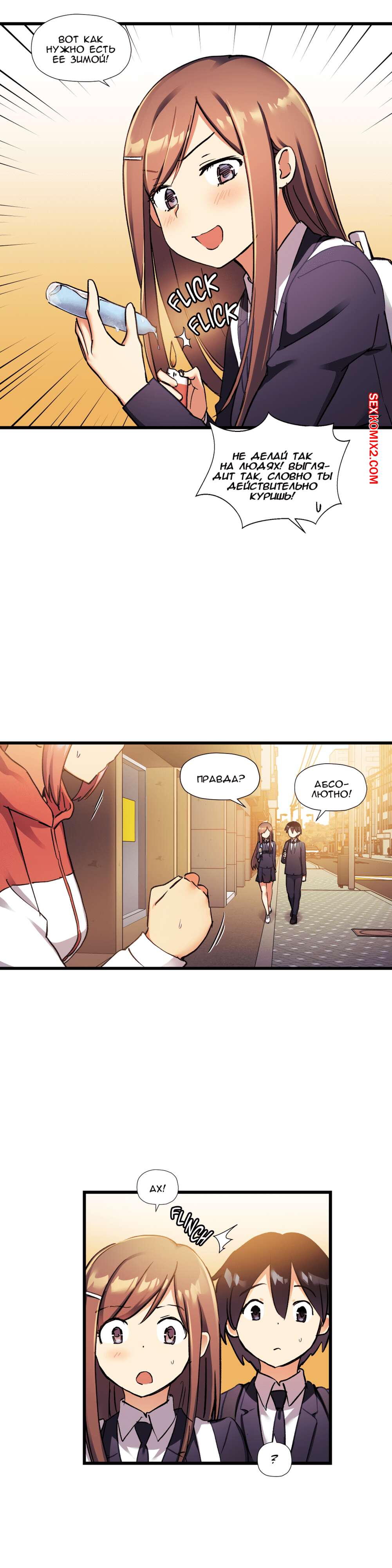 Порно комикс Под наблюдением моя первая любовь и я. Части 30 и 31 и 32 Парнишка с девушкой не поделил конфету и они столкнулись своими губами и поцеловались. Оба так сильно возбудились, особенно девушка, что она решила достать член друга и принялась сосать.