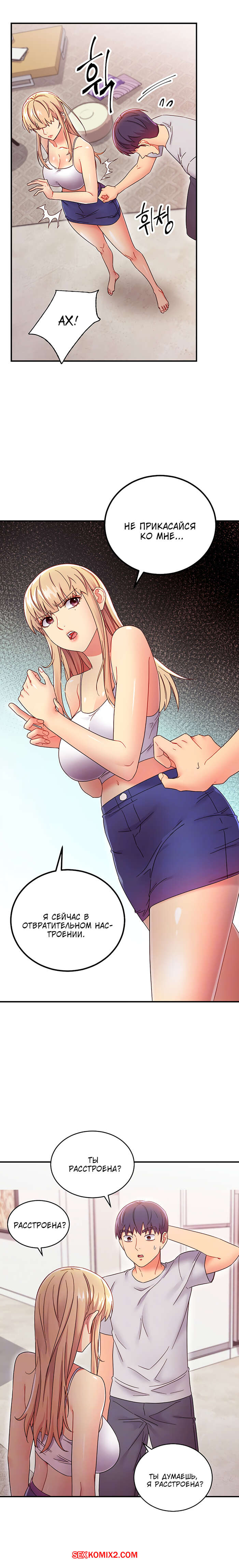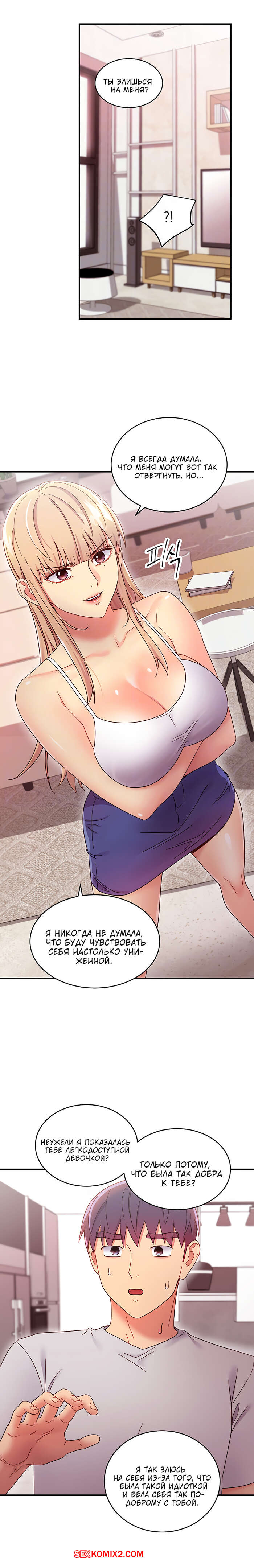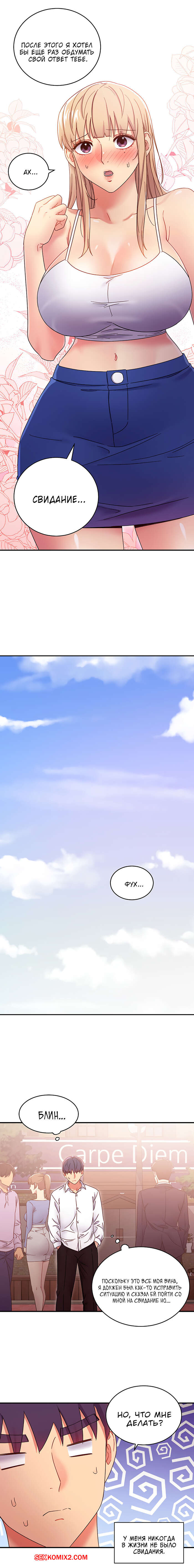 Порно комикс Мачеха и ее подруги. Часть 68. Stepmother Friends. Парень сильно обидел блондинку из-за чего девушка устроили истерику и ушла. Он твердо решил, что должен исправить свой косяк.