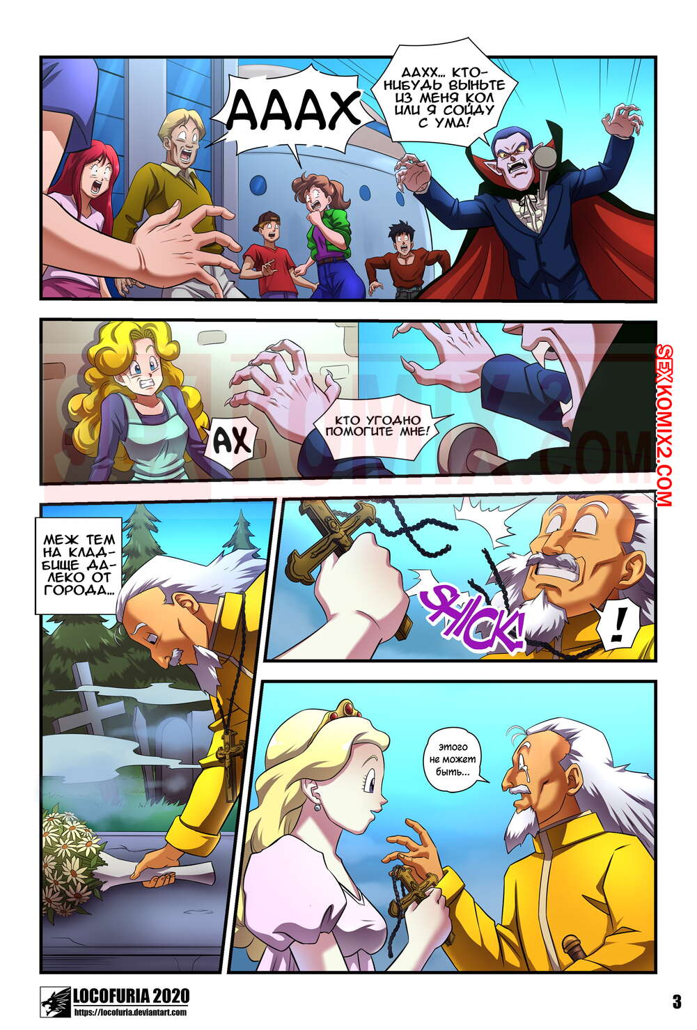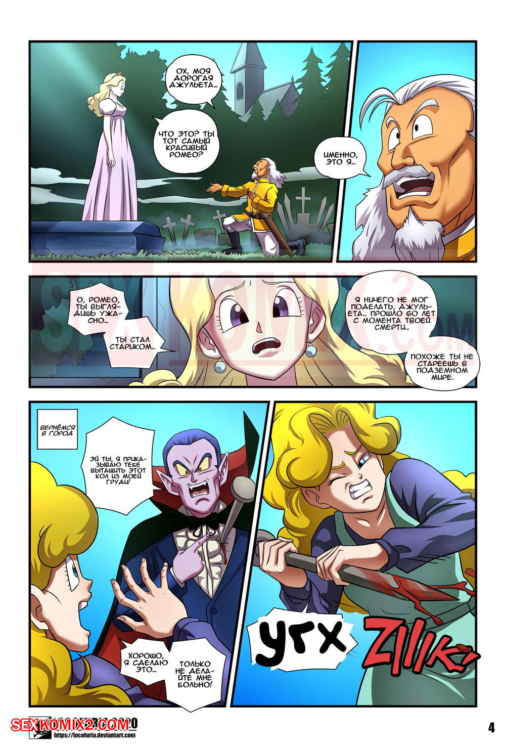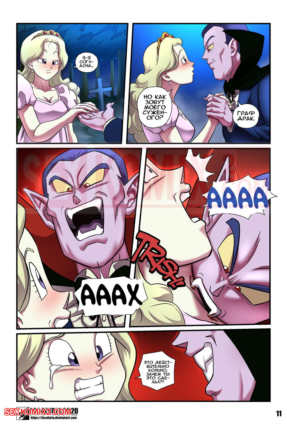 Порно комикс Граф Реборн. Части 1 и 2. Locofuria. Очень сильный и озабоченный вампир получил кол в грудь, он попросил девушку вытащить этот кол. Красотка не ведала что творит и спался его, обрекая себя на укус вампира. Теперь и она хочет пробовать людскую кровь.