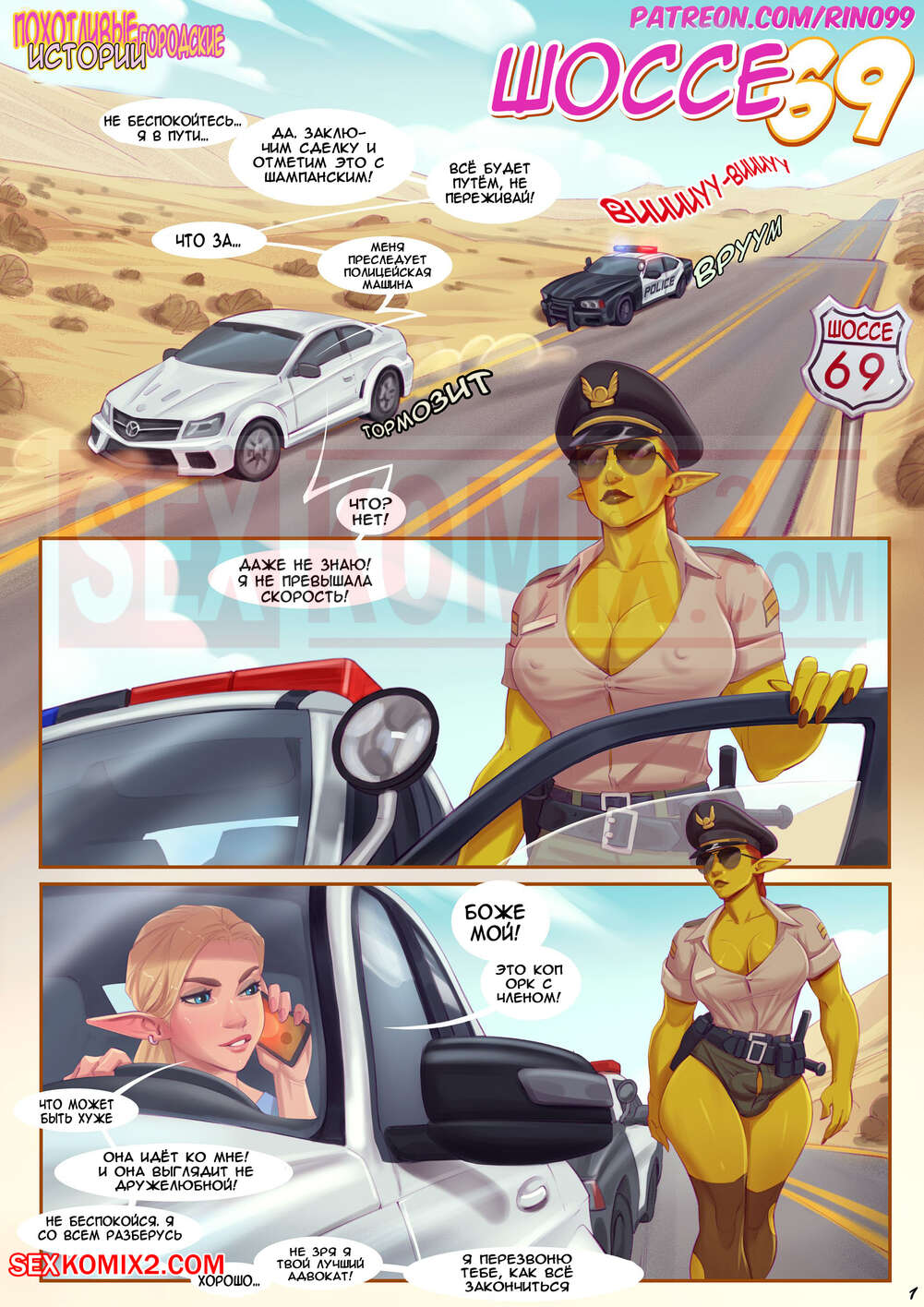 Порно комикс Маршрут 69. Rino99. На русском. Сексуальная эльфийка превысили скорость на трассе. Её остановила женщина полицейский и начала превышать свои полномочия. Она прижала красотку к капоту, достала свой член и трахнула нарушительницу.