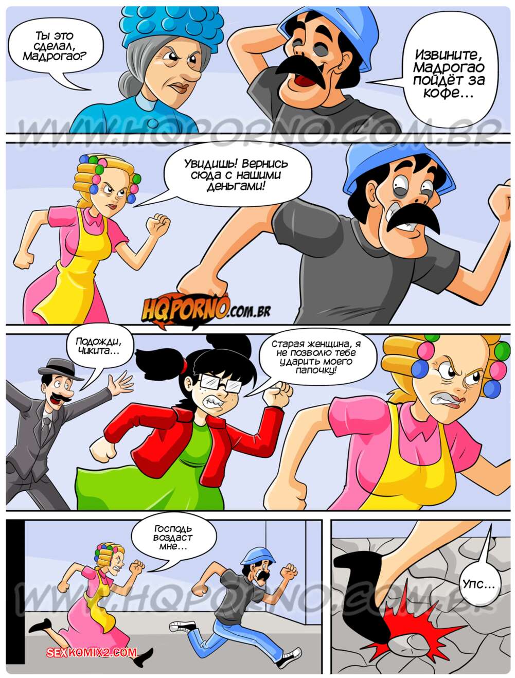 Порно комикс Чавиньо. Часть 28. Chavinho. HQporno Дона Флорильда погналась за Мадрогао, чтобы его проучить. Сучка споткнулась и упала на стояк старика. Чикинья это увидела и стала соблазнять профессора, чтобы с ним трахнуться, а Мадрогао стал трахать милфу.