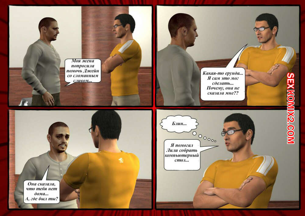 Порно комикс Хитрые жёны Две жены решили схитрить и махнуться своими мужьями между собой, чтобы хорошенько с ними поебаться, не говоря об этом мужьям. Так одна милфа позвала к себе дружка, чтобы он починил ей кран, а сама ждала его полуголая. Он встала на колени и отсосала ему, после чего он хорошенько ее отъебал.