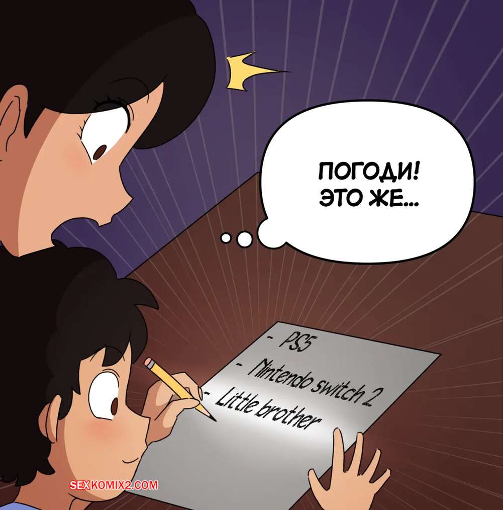 Порно комикс Рождественский список желаний. Christmas Wish List. Fufan. Молодой парень писал список желаний и мамочка решила посмотреть чего он хочет. Увидев в желаниях парня младшего братика, красотка надела сексуальное белье и позволила сыну себя выебать и кончить в нее.