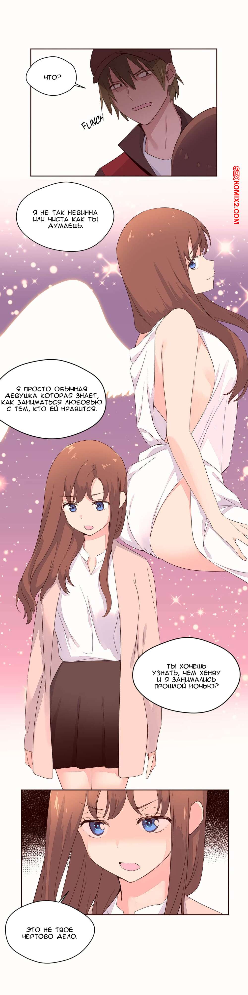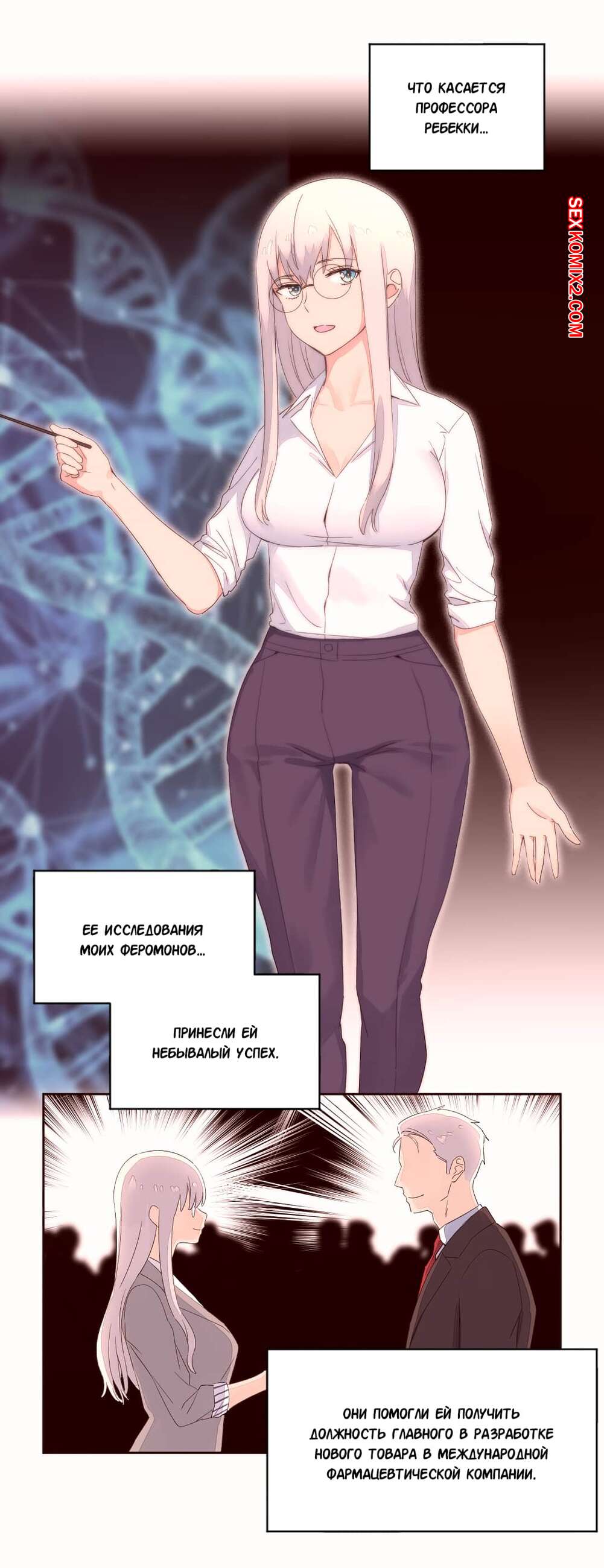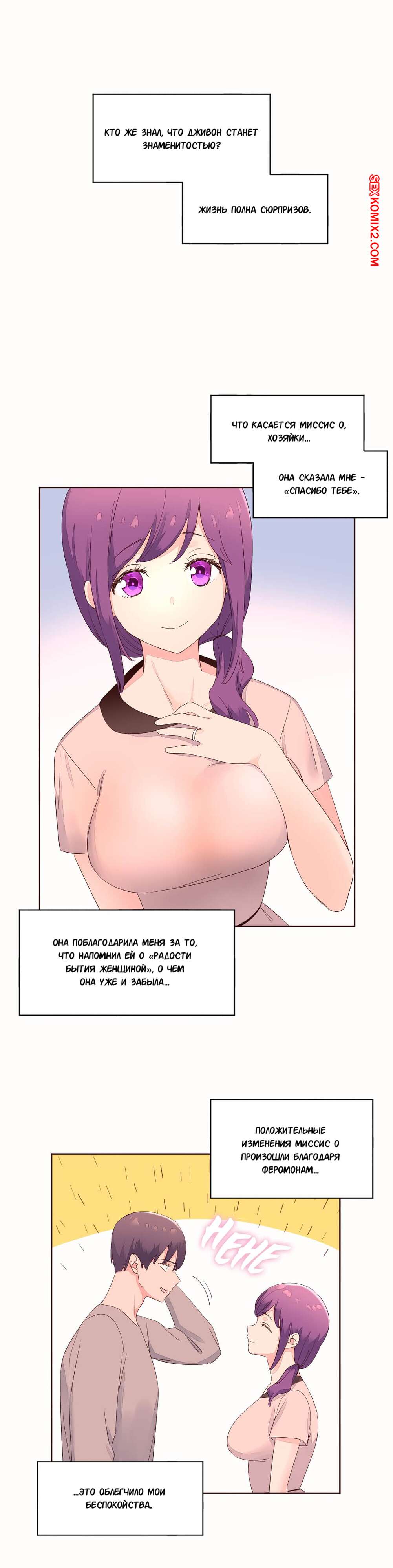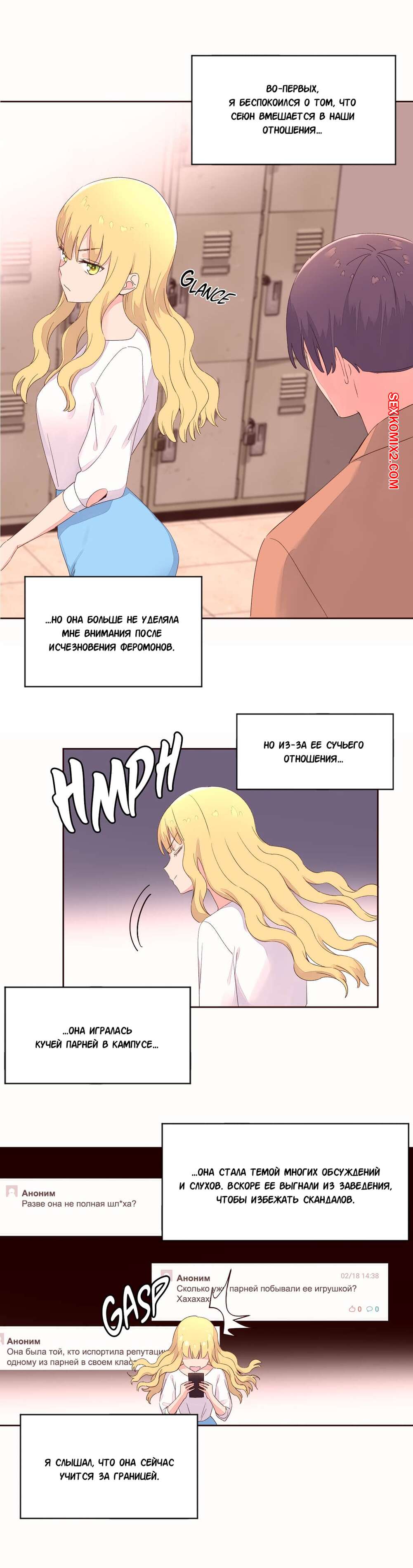Порно комикс Феромонозависимые. Части 52 и 53 Конец. Наш герой спас в магазине красотку от грабителя с ножом. Оказалось, что это его бывшая девушка, которую он очень любил. Они стали встречаться и он на ней женился. Теперь он трахал только ее и избавился от своего волшебного зелья, потому что ему больше никто не был нужен.
