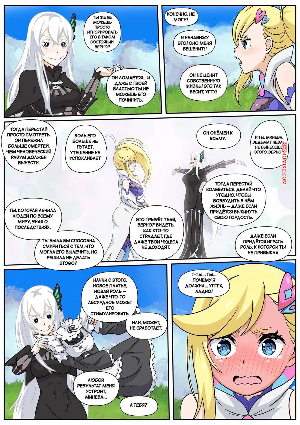 Порно комикс Минерва. Ведьма для тебя. IF Minerva. A Witch Maid For You. Wacum. Горячая блондинка поражена членом парня. Она встает на колени и глубоко в ротик заглатывает его хуец, после чего раздвигает ножки и дает себя выебать.