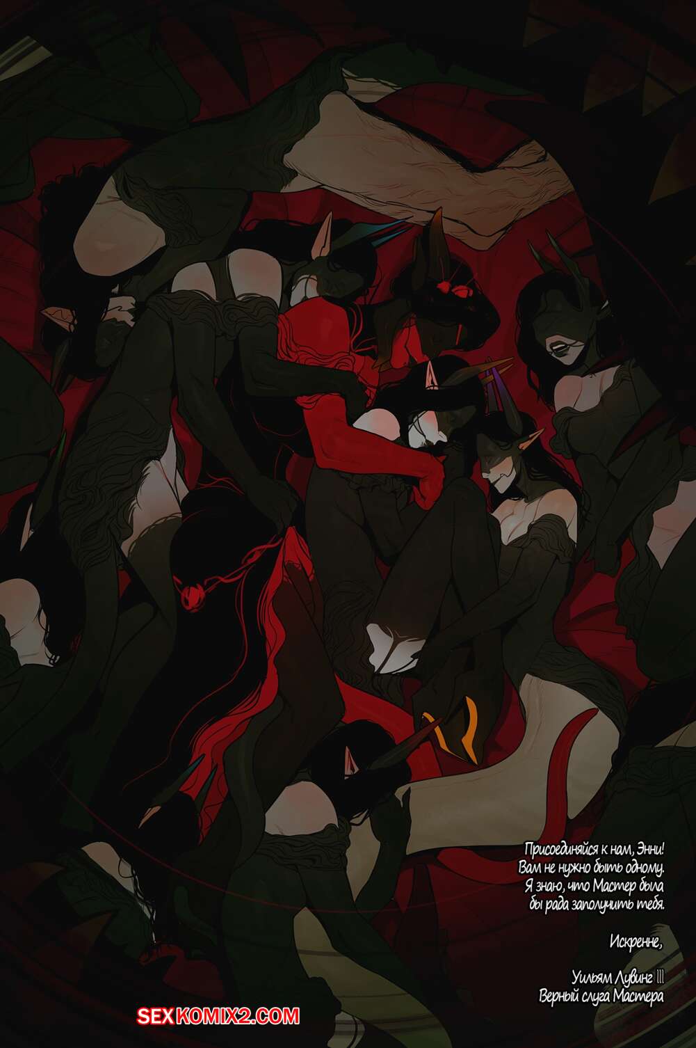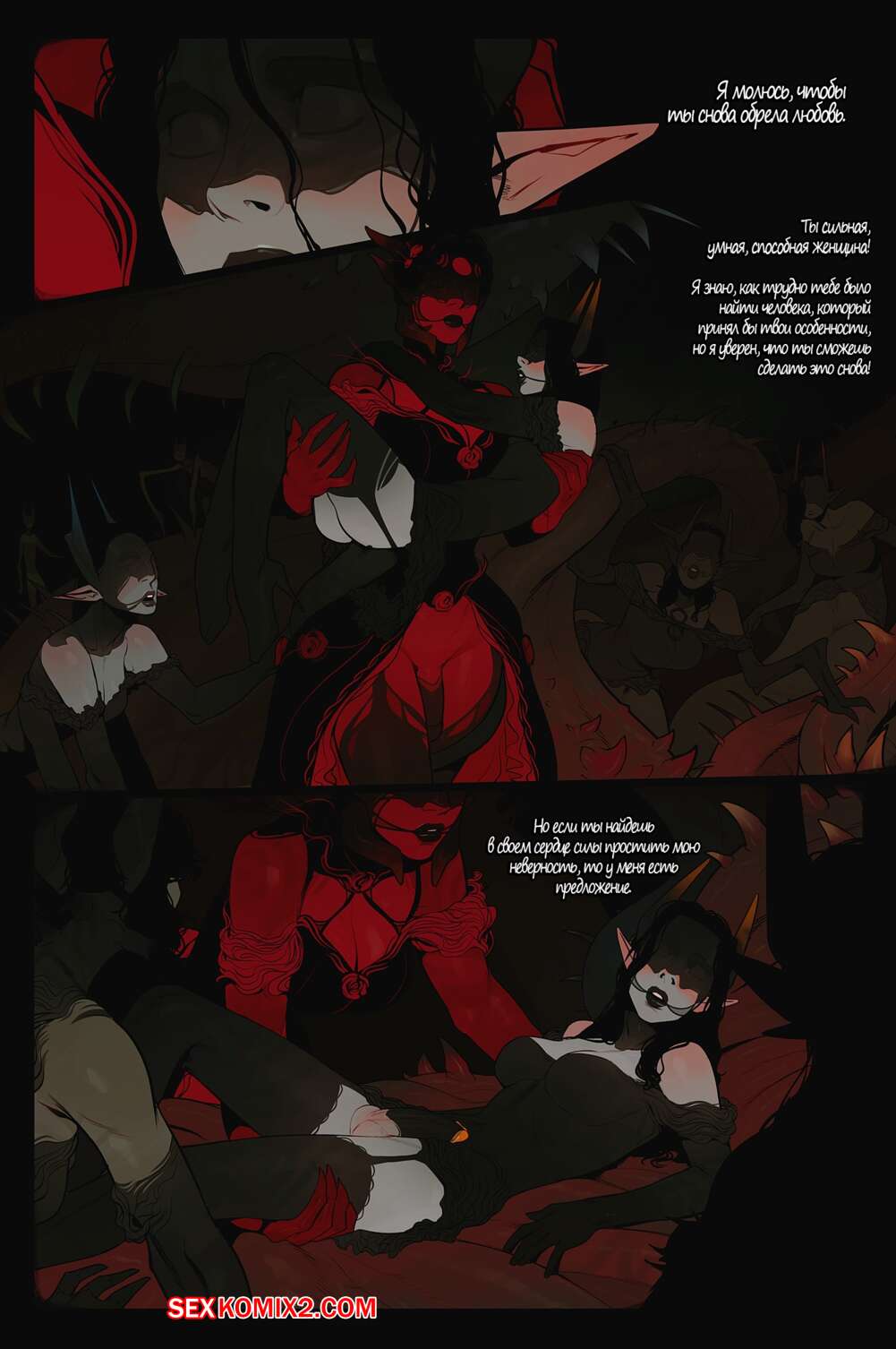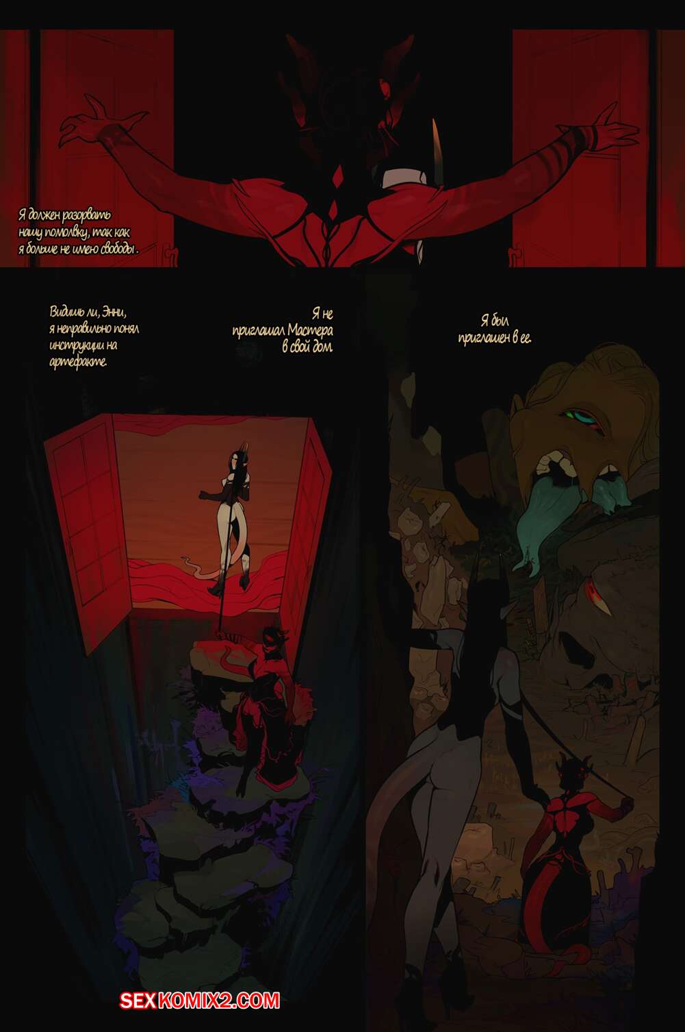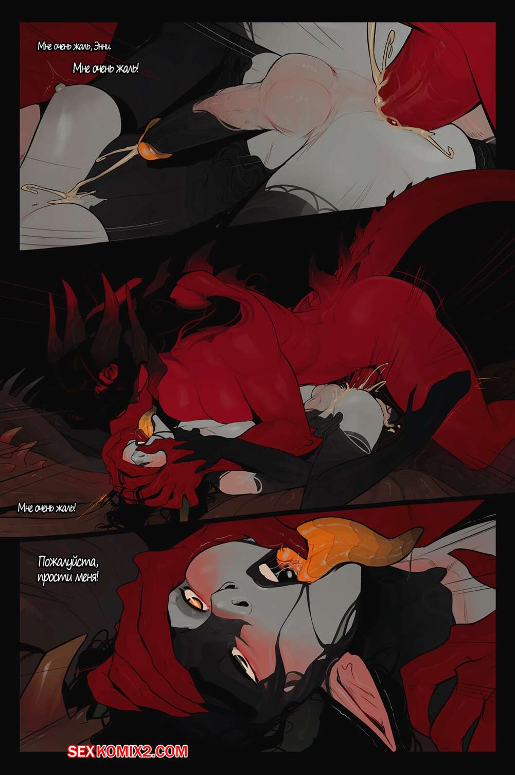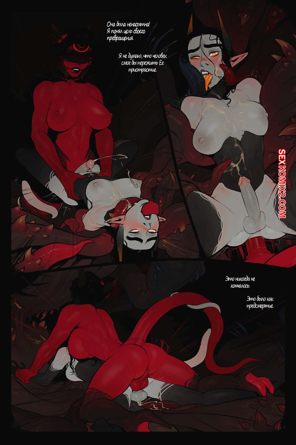 Порно комикс Приглашение. Часть 1. The Invitation. InCase Огромная красная демонша с большим хуем пригласила к себе красотку и заставила ее отсасывать ее здоровый болт. Хорошенько возбудившись, она стала ебать красотку своим причендалом в разных позах, заставляя ее стонать от удовольствия.