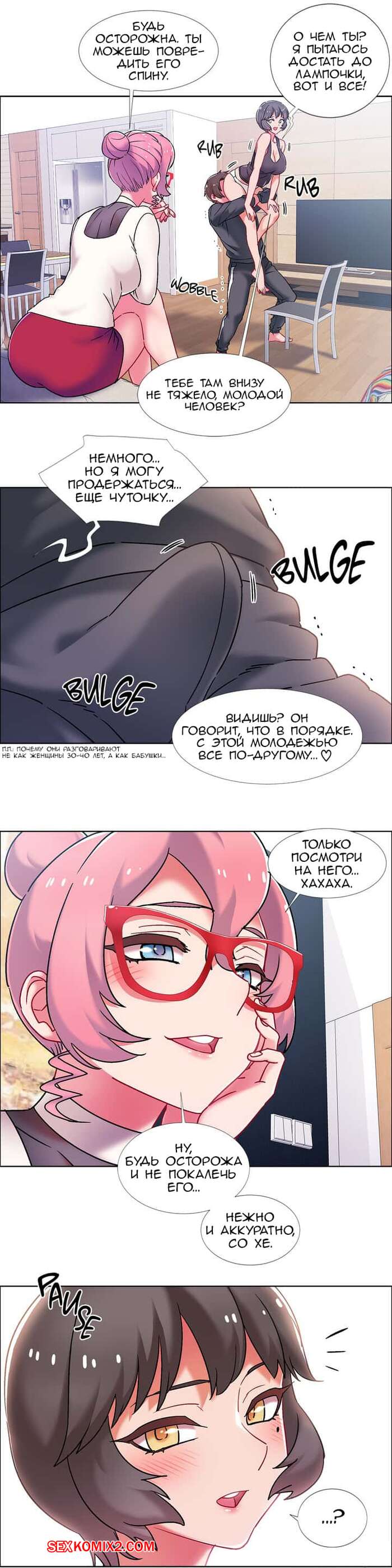 Порно комикс Прокат девушек. Части 45 и 46 и 47 и 48. Rental Girls. Парень помогает женщине вкрутить лампочку, она забралась на стул, а он схватился за ее попку и следит чтобы она не упала. Пришло время опускать ее, он парень так замечтался как бы он трахнул эту сочную попку, что не слышал ничего вокруг.