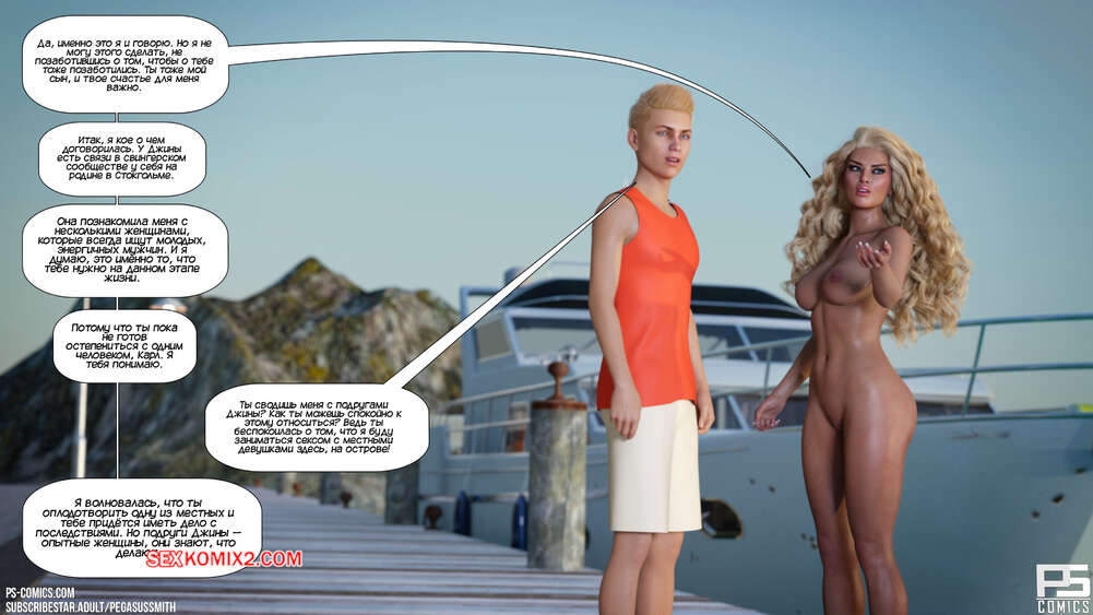 Порно комикс Нагишом. Нудистский курорт. Часть 29. Au Naturel. Pegasus Smith Виктория и ее семья готовятся покинуть остров. Красотка встретилась с Брэнди и Джиной, чтобы их поблагодарить за все, после чего уединилась с Карлом, чтобы сообщить ему о своем решении касательно будущего.