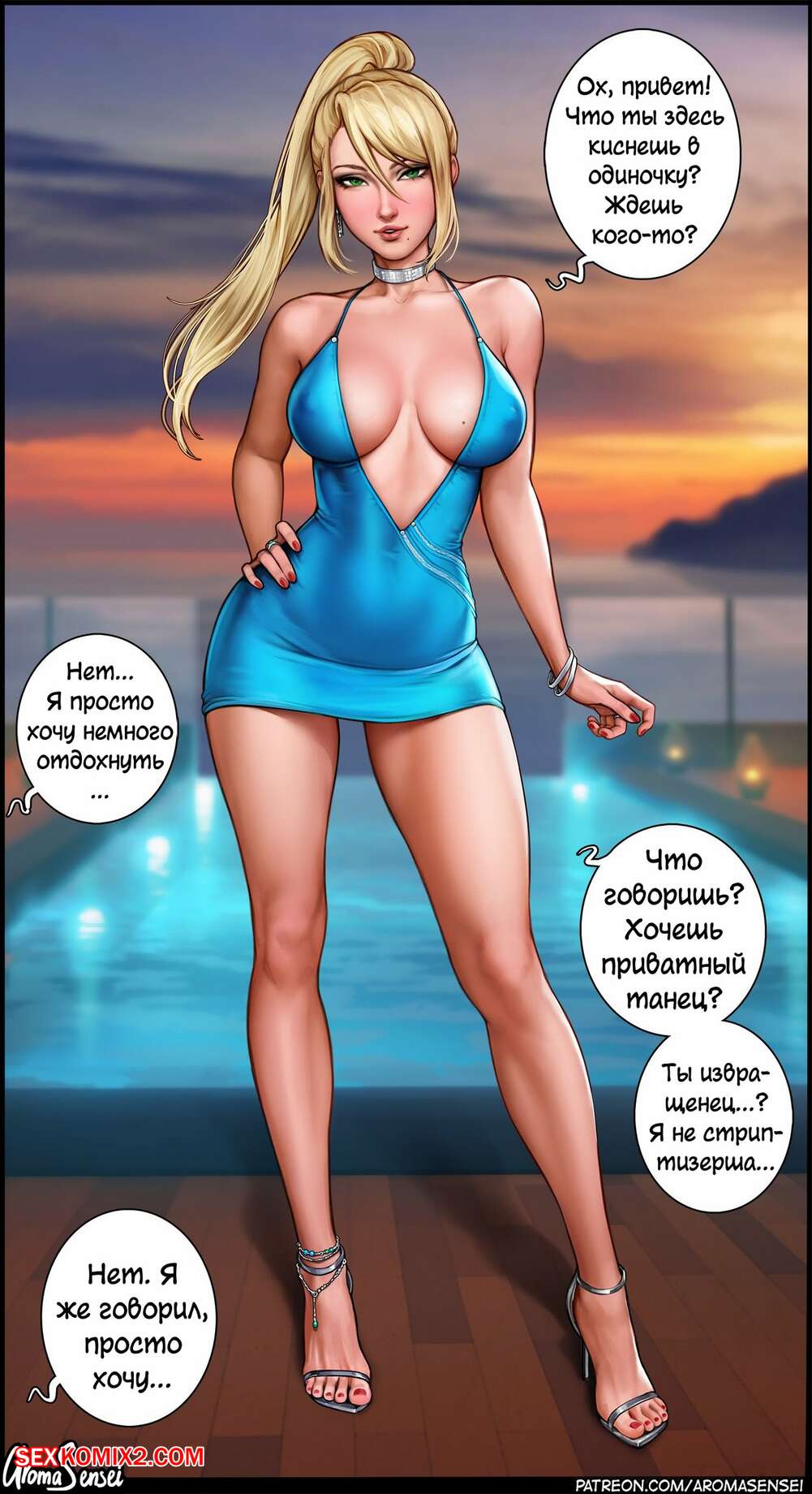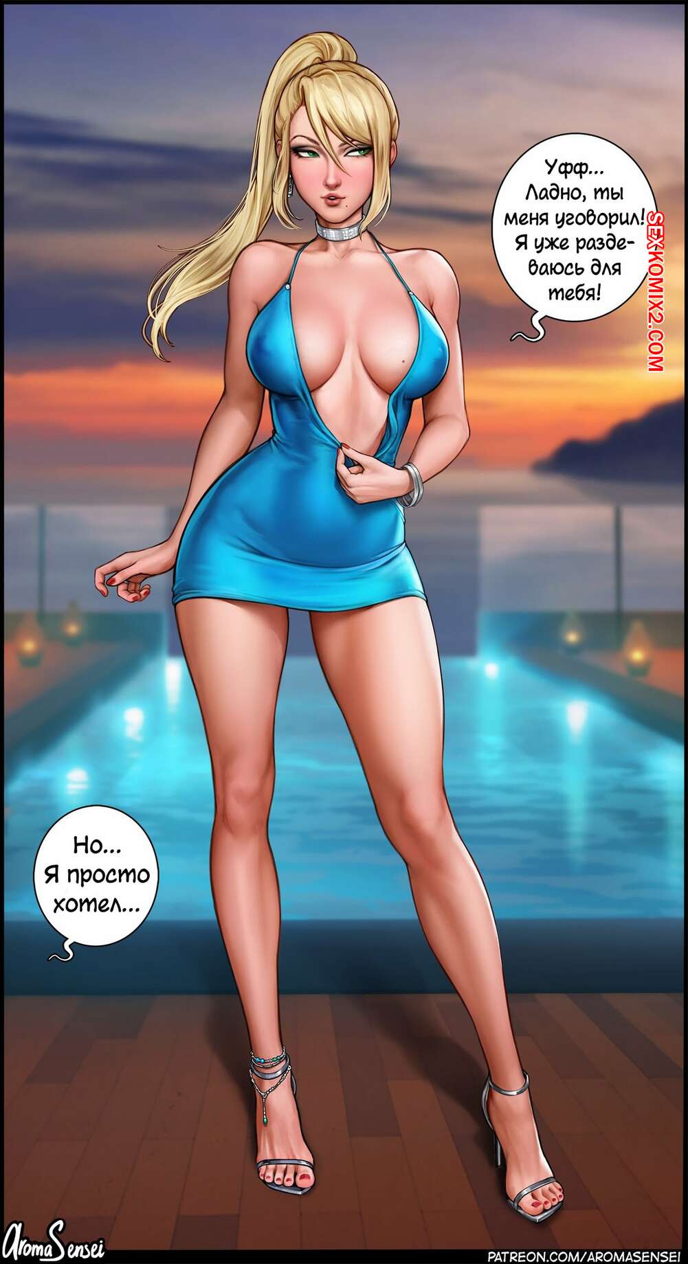 Порно комикс Эльза готовится к работе. AromaSensei. Горячая снежная королева готовится к рабочему дню, но она не может одеться как нормальные люди. Она начинает кривляться перед зеркалом и показывать сиськи.