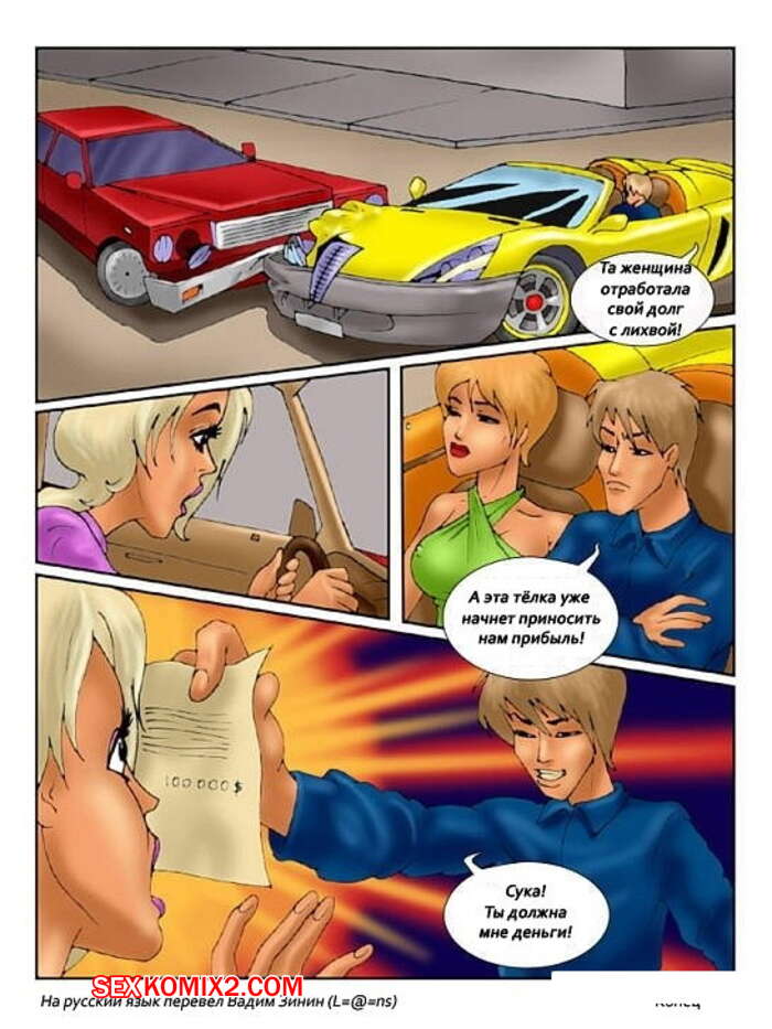 Порно комикс Натуральный платёж Горячая сучка разбила дорогую машину мужика. Он выставил ей огромный счет, но у нее не было таких больших денег, поэтому мужик предложил сучке рассчитаться натурой. Он раздел сучку и повалил на кровать, где хорошенько ее выебал.