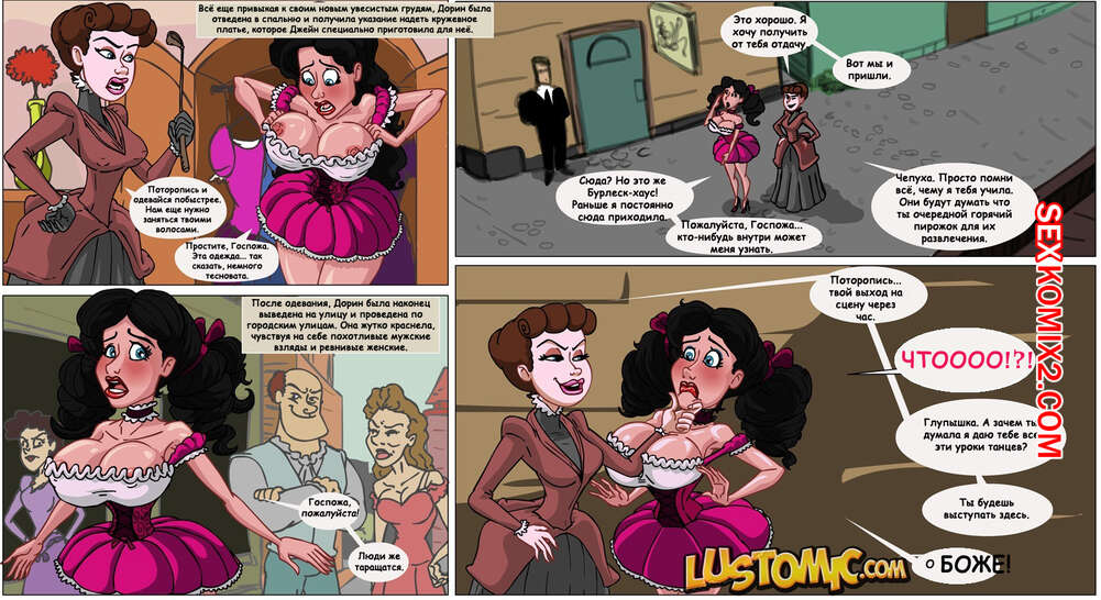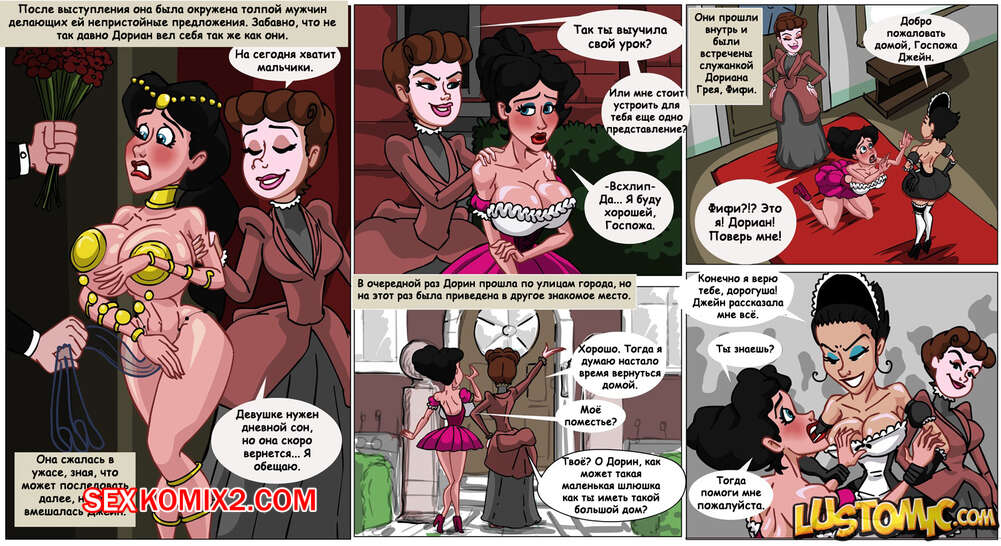 Порно комикс Дорин Грей. Doreen Grey. Часть 2. Lustomic Две милфы решили воспользоваться горячей сучкой брюнеткой с большим хуем и сиськами. Они связали ее, крепко стянули ее хуй, а затем оседлали его и стали хорошенько трахать.