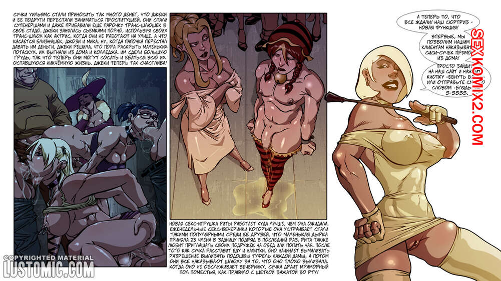 Порно комикс Экстремальное гендерное неравенство. Часть 2. Extreme Genderbending Горячие красотки любят весело проводить время. Они связывают друг дружку, крепко сжимают большие хуи. Затем девушки устраивают БДСМ игры, хорошенько шлепая жертв, а затем трахают в задницы.