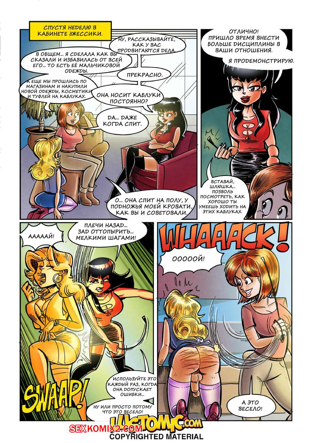 Порно комикс Кроссдрессинг терапия. Часть 1. Cross Dressing Therapy. Парень пришел к женщине психологу и начал жаловаться на свою проблему. Он любит переодеваться в женскую одежду, и это нужно изменить.