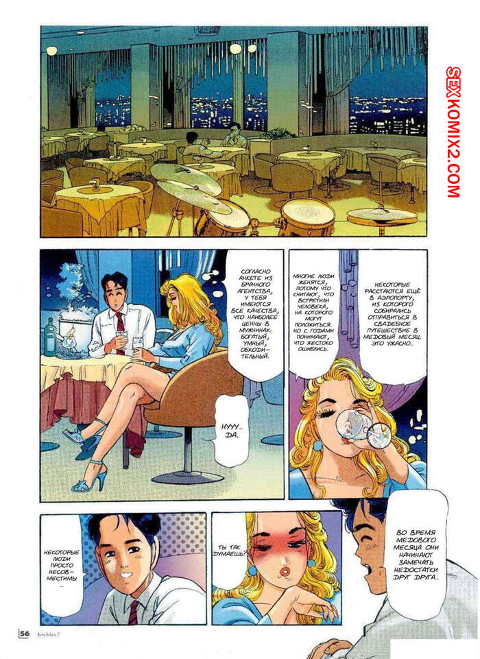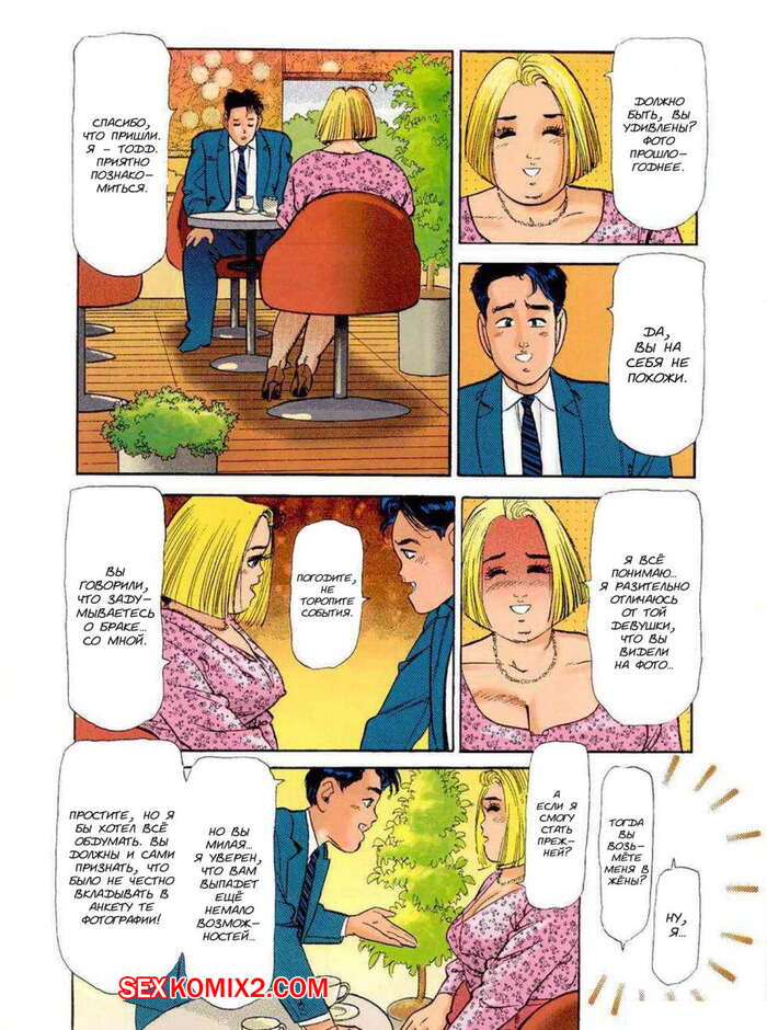 Порно комикс Ретро. Чем толще, тем лучше. Chiyoji Tomo Парнишка отправился в ресторан с горячей сексуальной блондинкой. Парочка не плохо выпила и поэтому красотка стала ласкать парня и начала сосать его большой хуй, после чего дала себя хорошенько выебать.