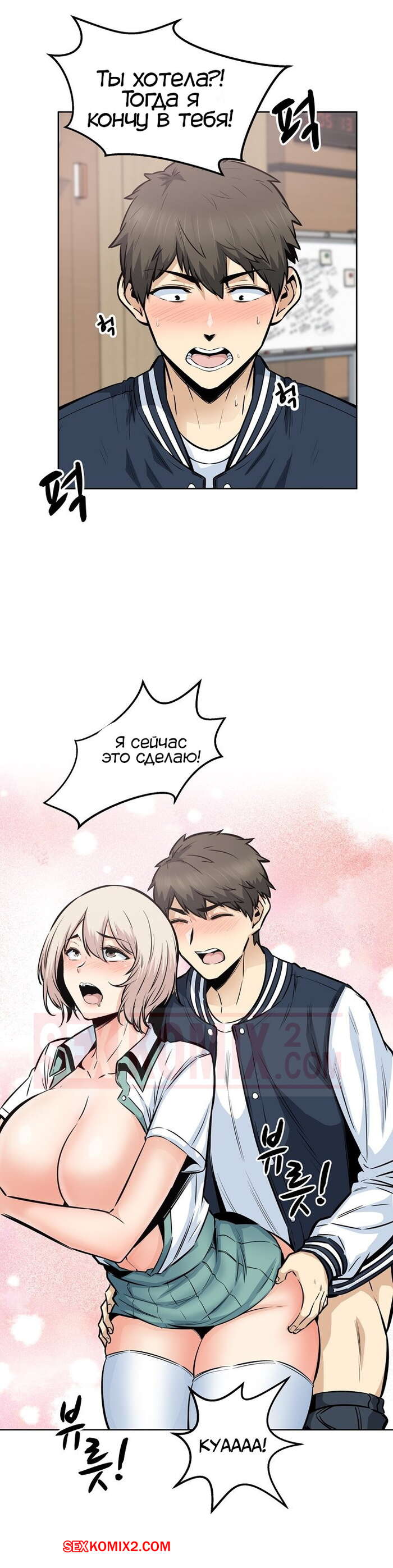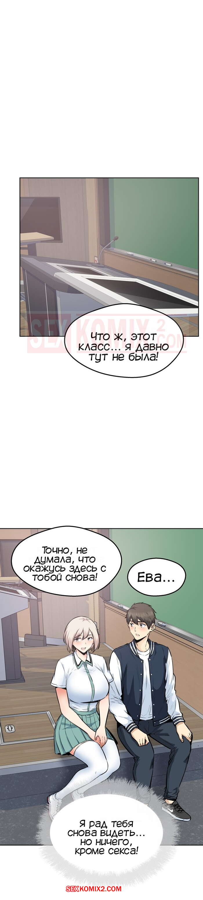 Порно комикс Извини, это моя комната. Часть 91. Excuse me This is my Room Парнишка встретила после концерта со своей бывшей подругой. Они решили уединиться в школьном классе и стали вспоминать былые времена, а затем парень не смог себя сдерживать и выебал красотку, чему она была только рада.