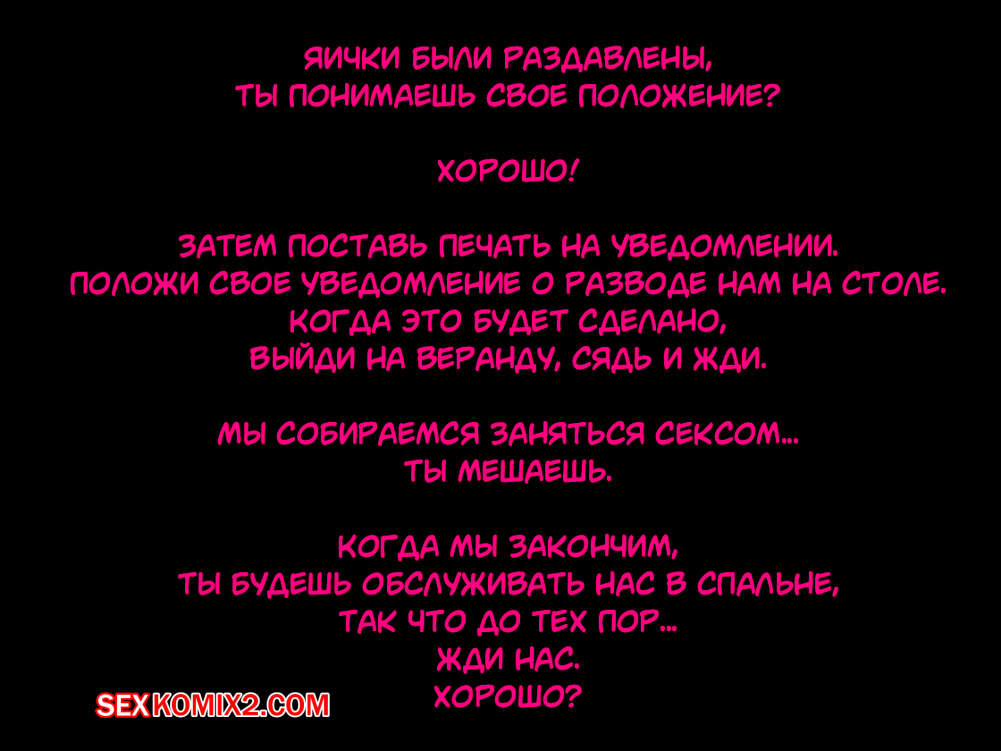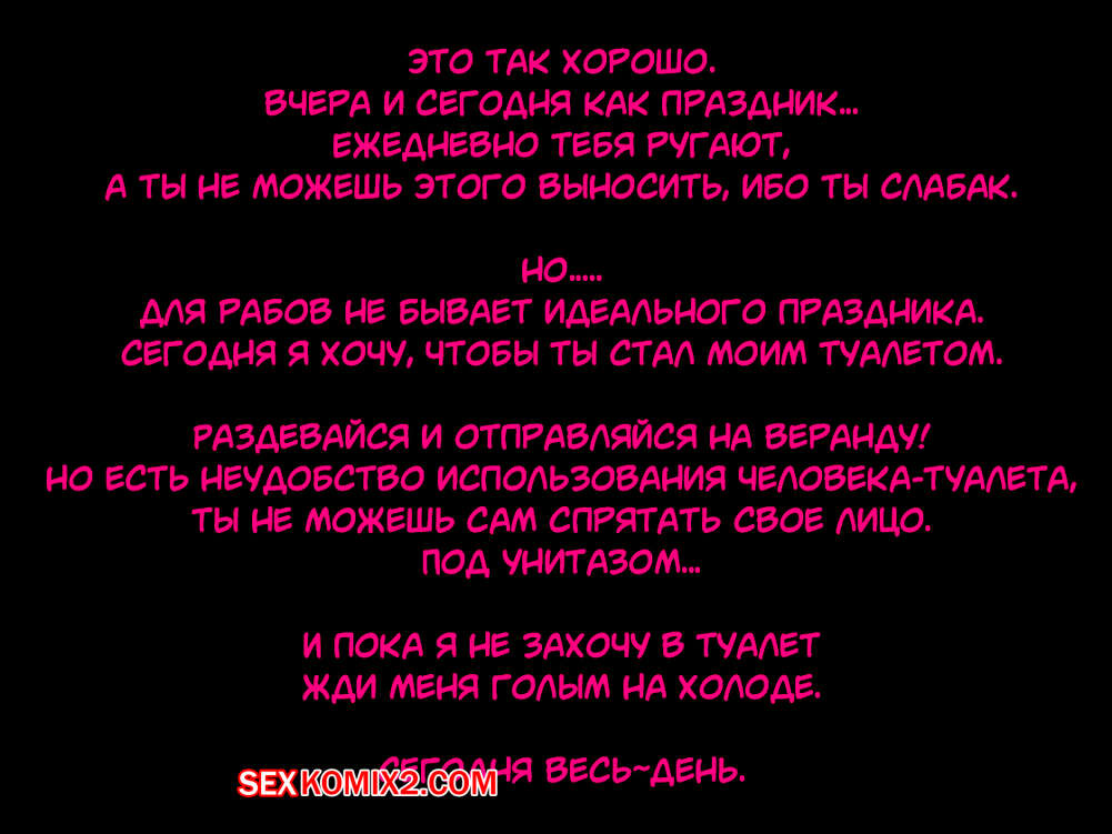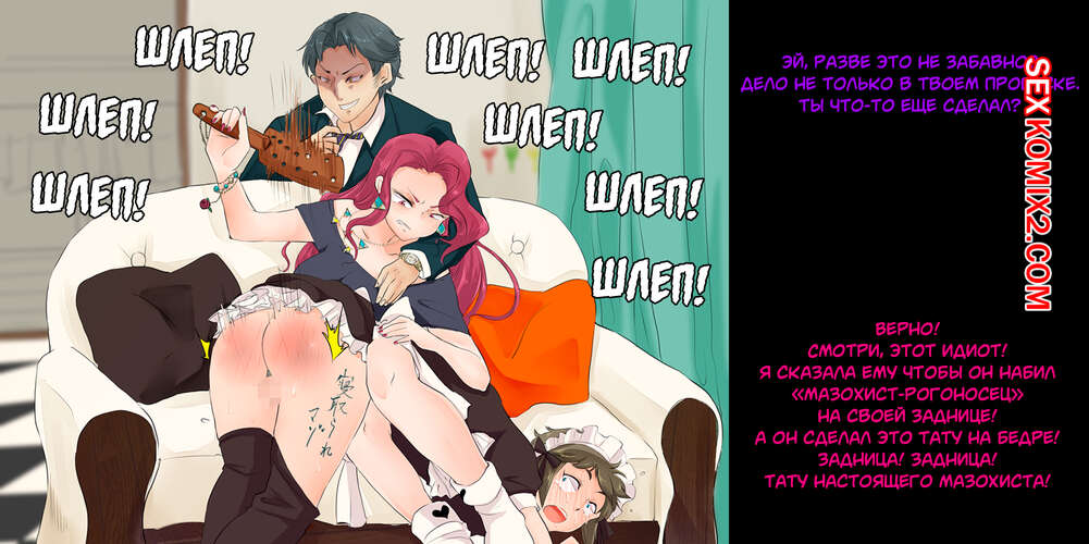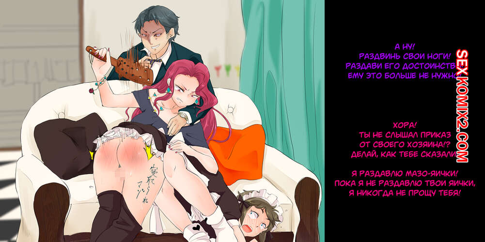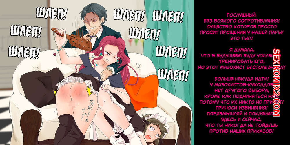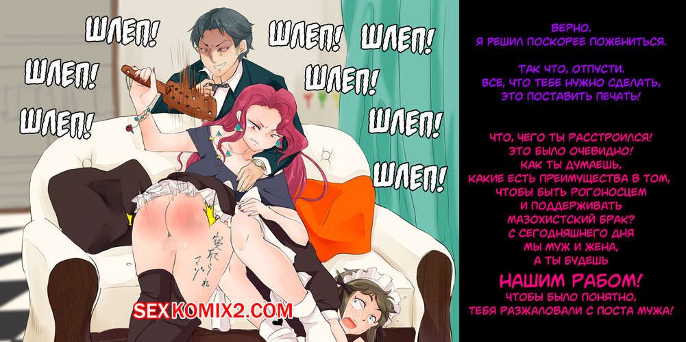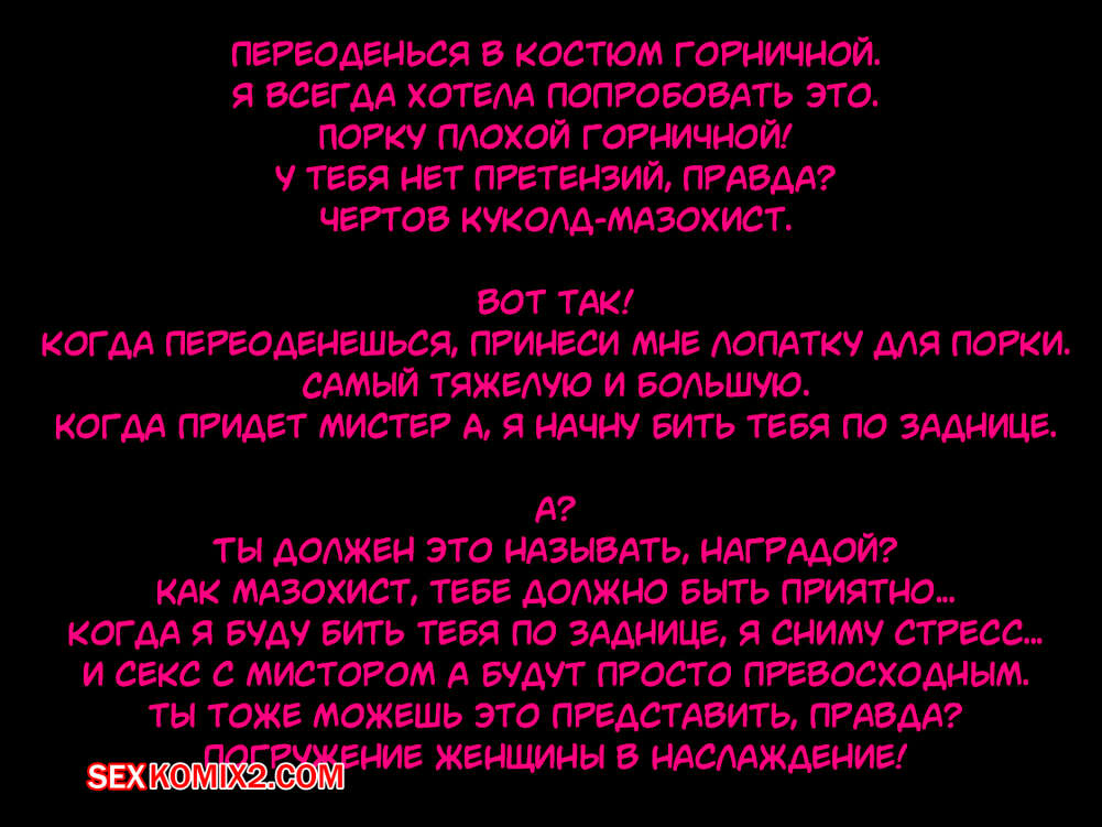 Порно комикс Рогоносец как человек туалет, стал ненужным. Парень со своей девушкой любят пользоваться их горничной в сексуальных целях. Они делают с ней что угодно. Дамочка дает отлизать своей горничной пизду, мощно шлепает ее задницу, а так же наблюдает как ее парень ебет узкую пизденку слуги.