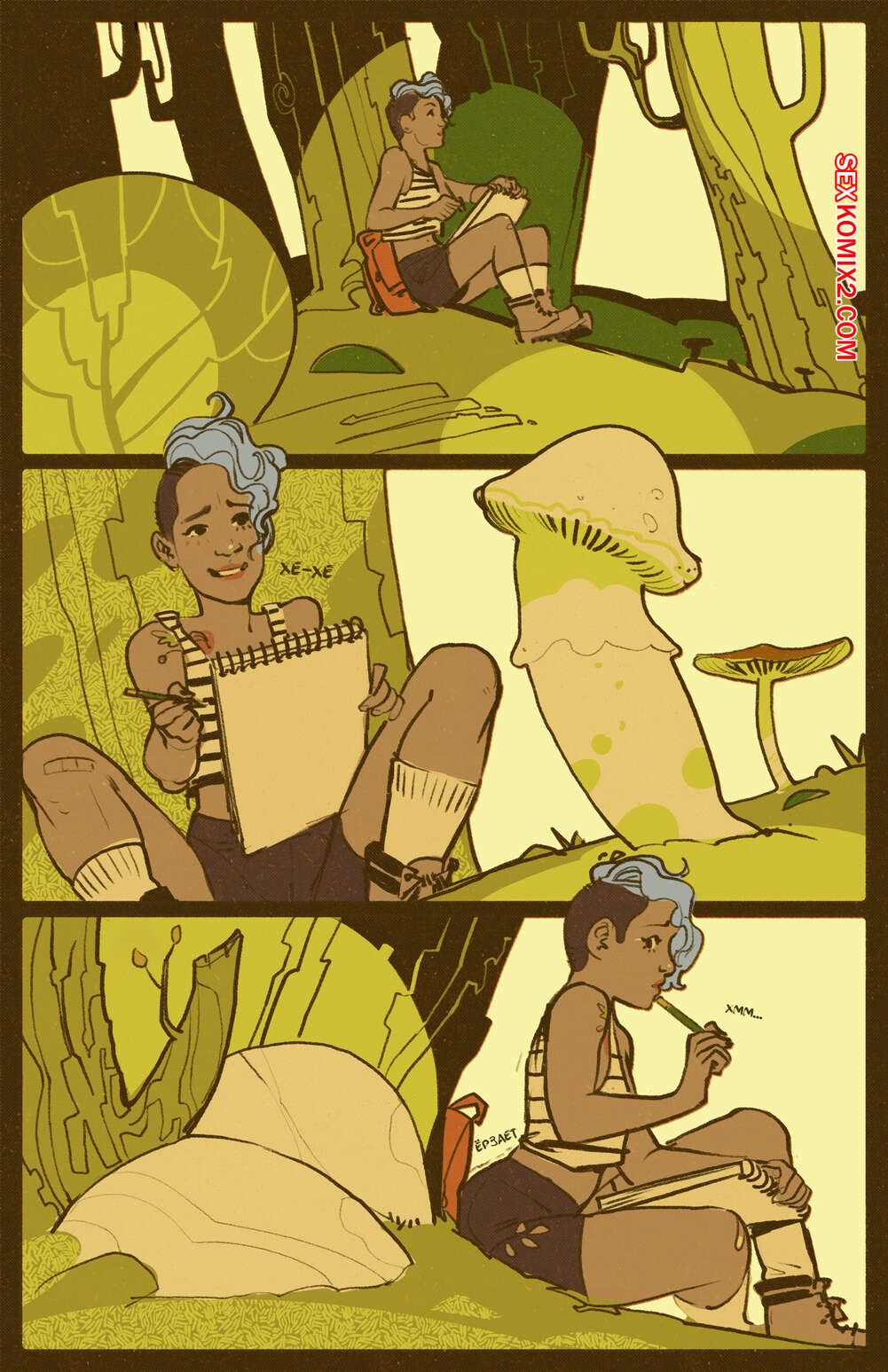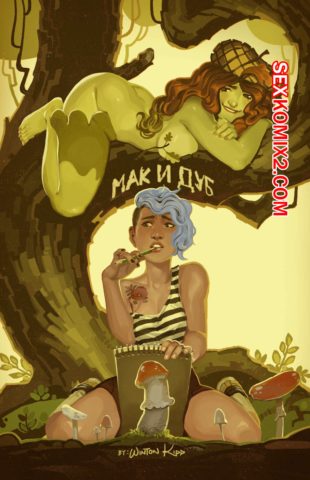 Порно комикс Мак и Дуб. Poppy and Oak. Русс Горячая красотка блондинка с большим хуем решила прилечь отдохнуть под деревом. Там она обнаружила горячую голую красотку и стала дрочить свой большой хуй, глядя на нее. Девушка решила с ней повеселиться и начала отсасывать, после чего дала себя хорошенько выебать.