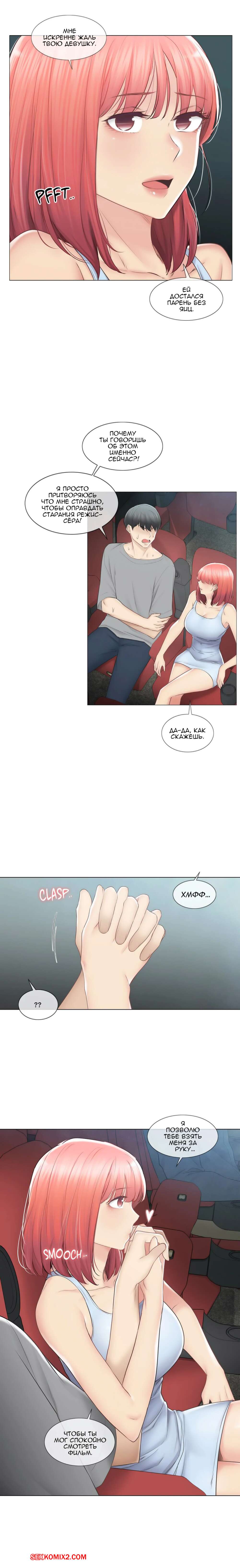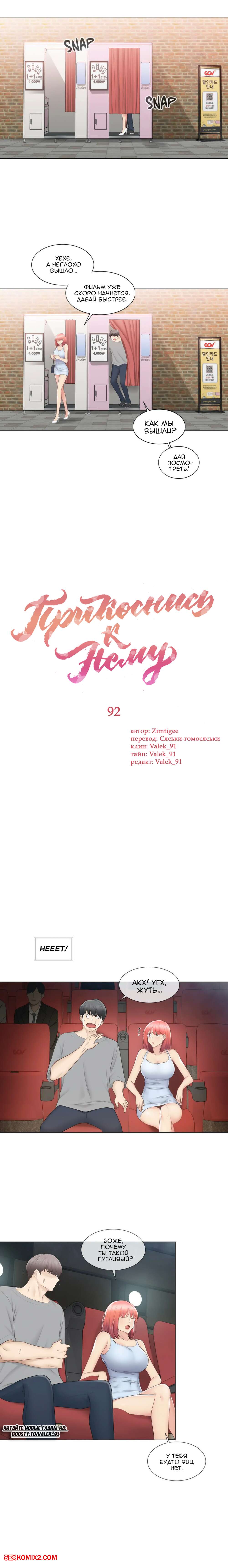 Порно комикс Прикоснись к нему. Части 91 и 92. Touch to unlock Горячая красотка встретилась со своим дружком и пошла с ним в кино. Вернувшись домой, они решили повеселиться и поебаться. Сучка стала сосать его большой хуй, а после этого дала себя хорошенько выебать.