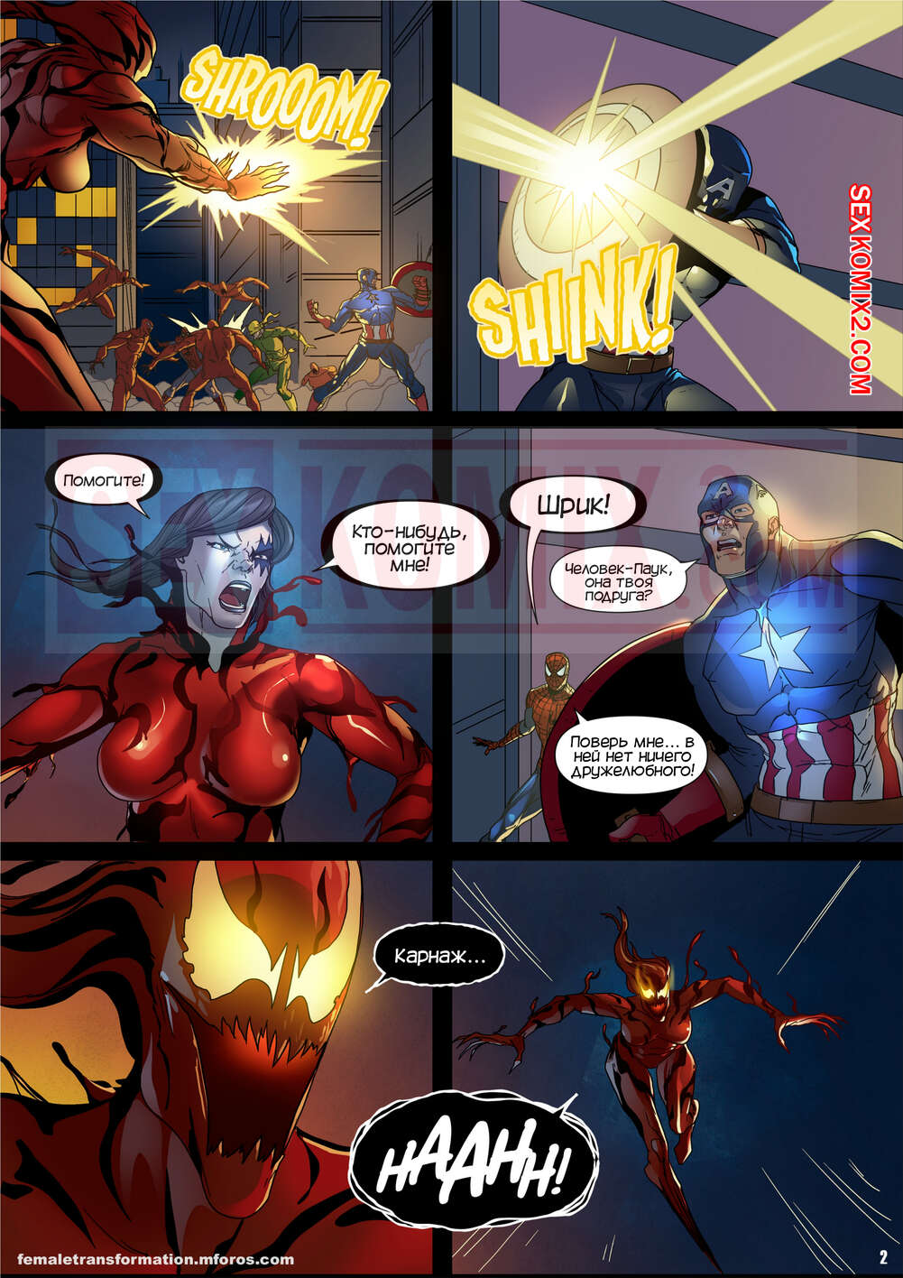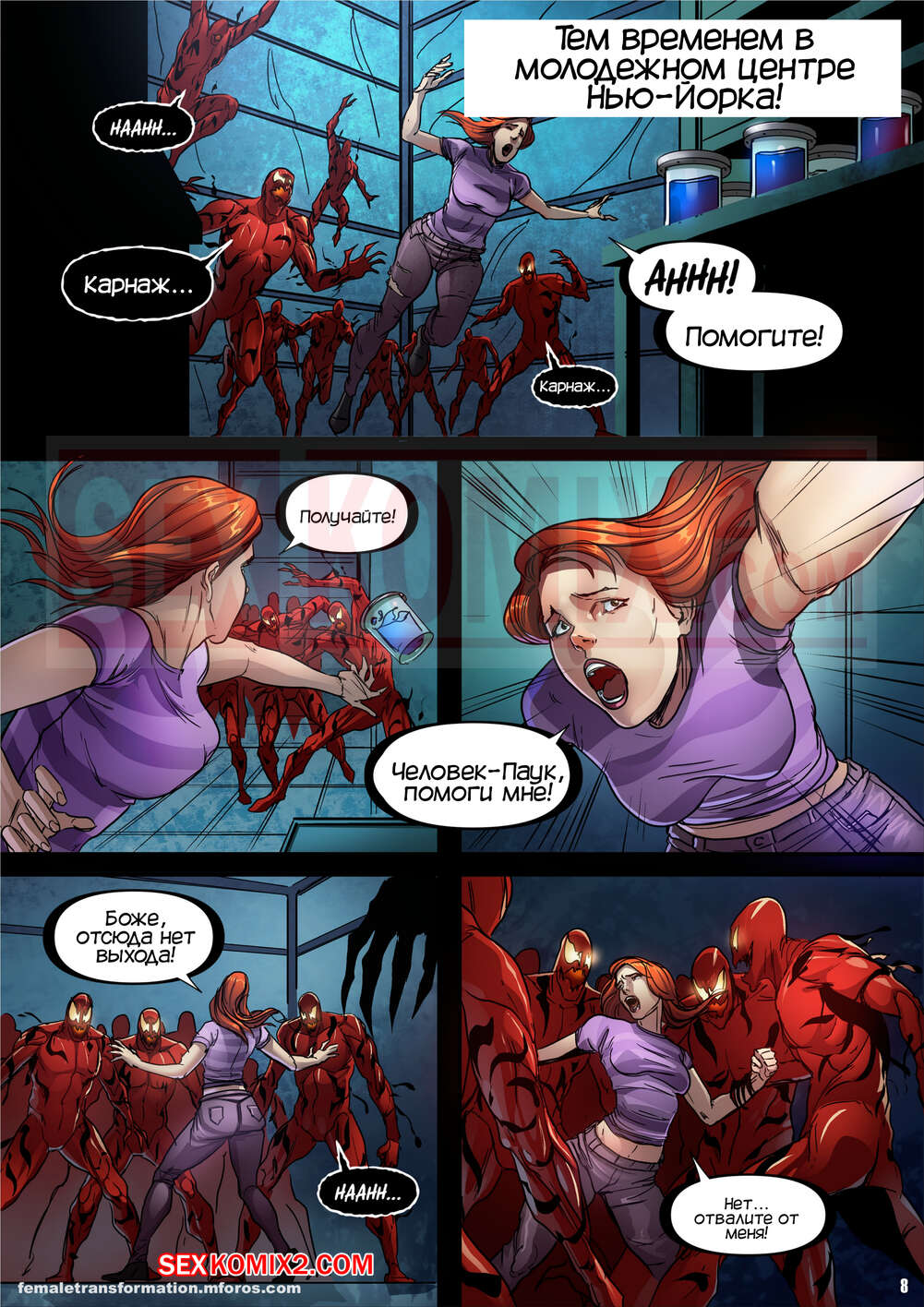 Порно комикс Веном. Королева симбиот. Часть 1. Symbiote Queen. 6Evilsonic6 На город напал симбиот Карнаж и стал захватывать жителей. Пока ЧеловекПаук боролся с красоткой, на которую напал Карнаж, его подругу Мэри Джейн схватили и начали трахать ее в ротик и пизду, желая сделать королевой Карнажа.