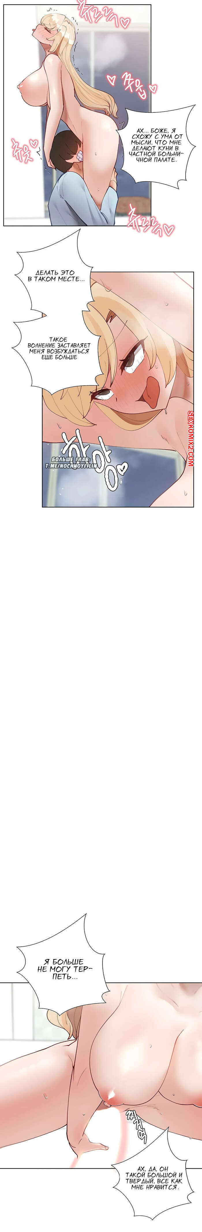Порно комикс Репетиторство. Части 51 и 52. Lljinnyeo tutoring Парнишка попал в больницу и его навестила красотка блондинка. Она решила сделать парню приятно, поэтому начала сосать его большой хуй, а затем дала себя хорошенько выебать.