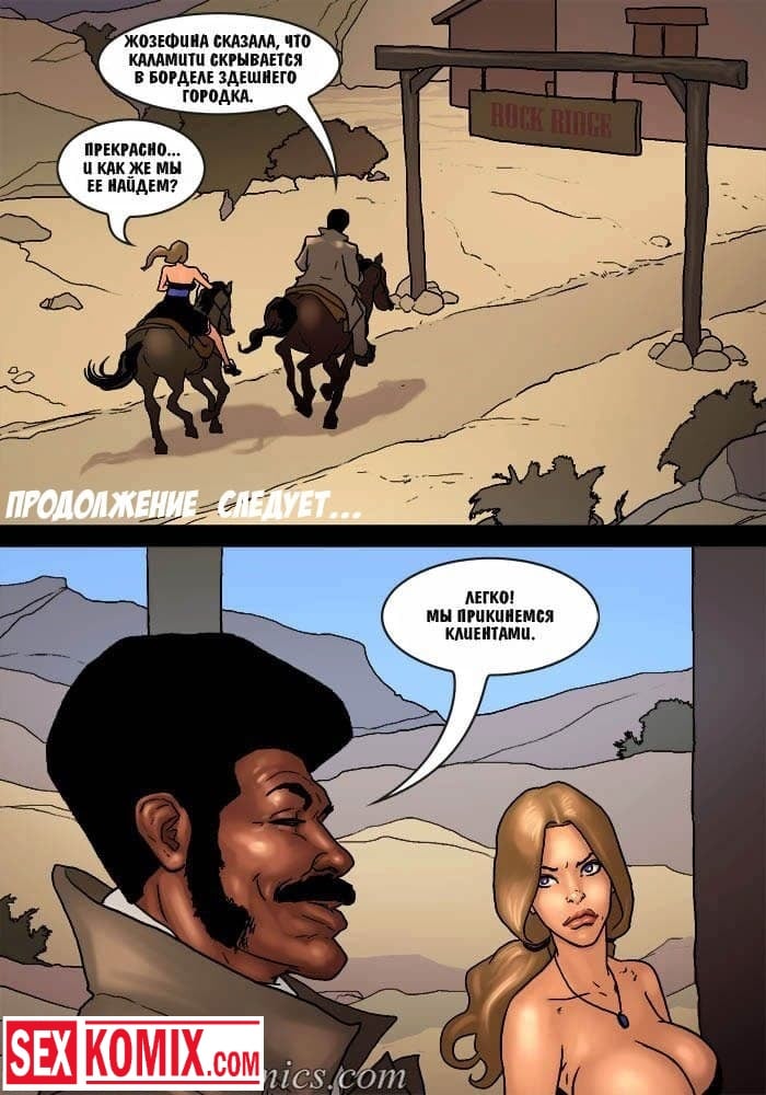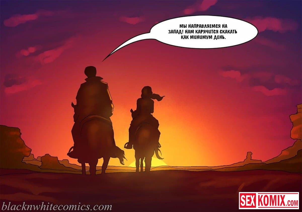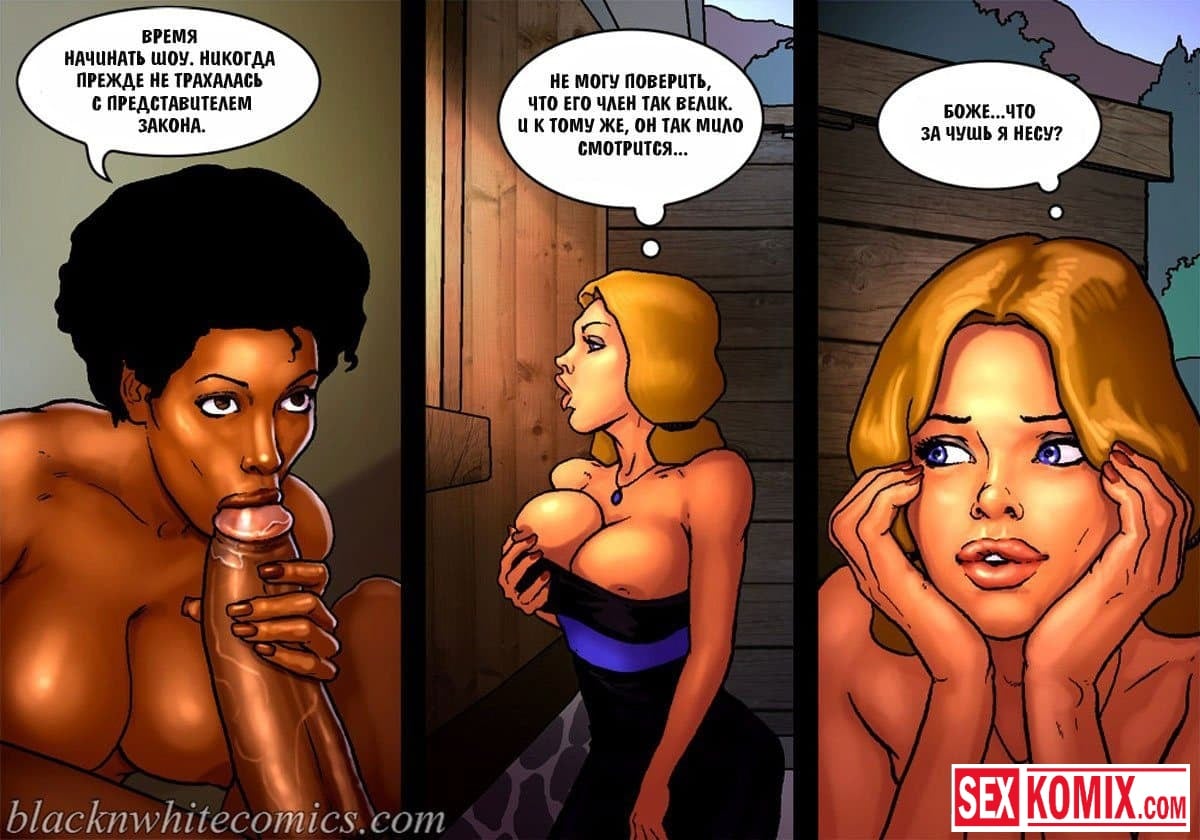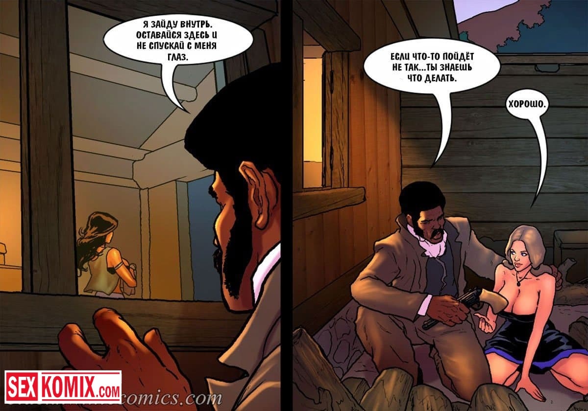 Порно комикс Честный коп. Часть 4. Ковбой с дикого запада со своей сексуальной напарницей, пришли к убежищу известной преступницы. Он оставил свою подругу на подстраховке, а сам пошел в хижину, чтобы схватить бандитку. Но когда она была у него на мушке, мужчина почувствовал ствол у своего затылка, это была вторая девушка. Они решили наказать копа, и соблазнили его своими сексуальными телами. Мужчина не смог вывернуться из ситуации, ему пришлось трахнуть их.