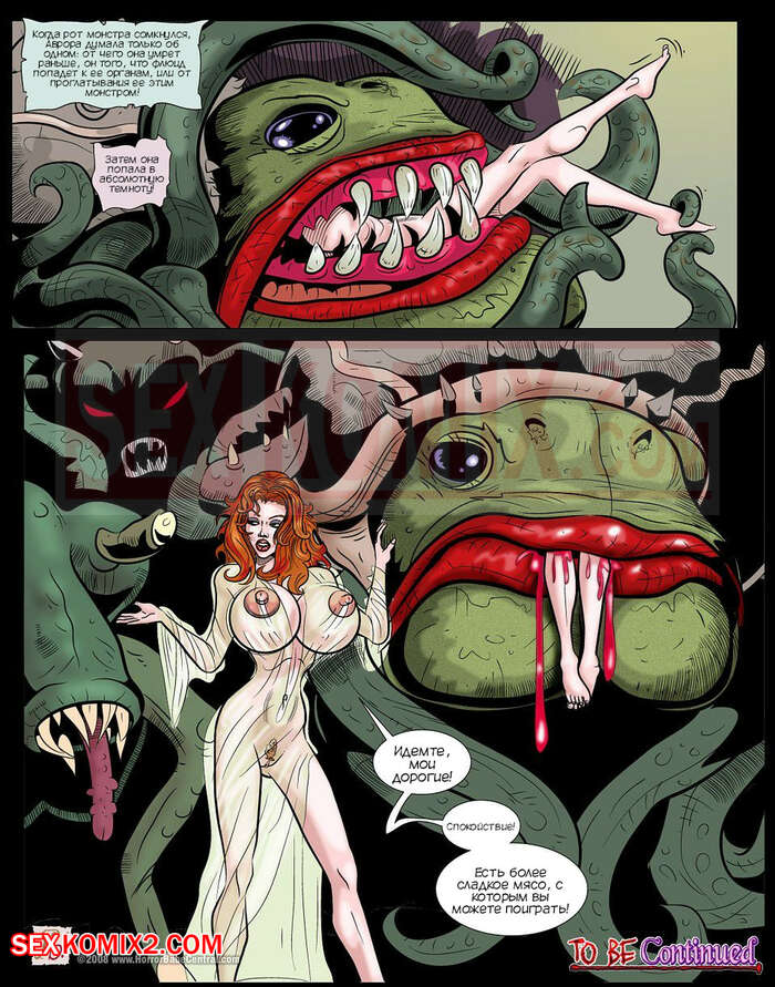 Порно комикс Эротомания. Часть 14. Erotomania. HorrorBabeCentral Горячая милфа брюнетка оказалась перед рыжей ведьмой и ее огромным монстром. Чудище схватило сучку своими щупальцами и стало трахать все ее дырочки, а затем поглотило ее.