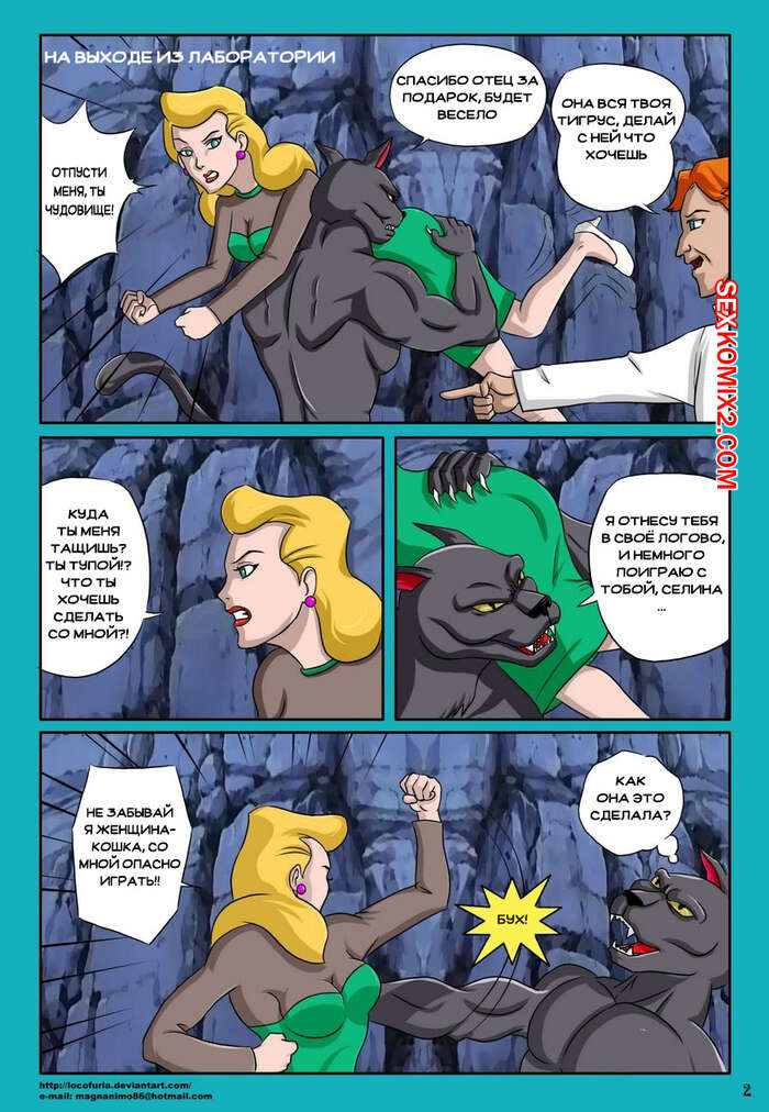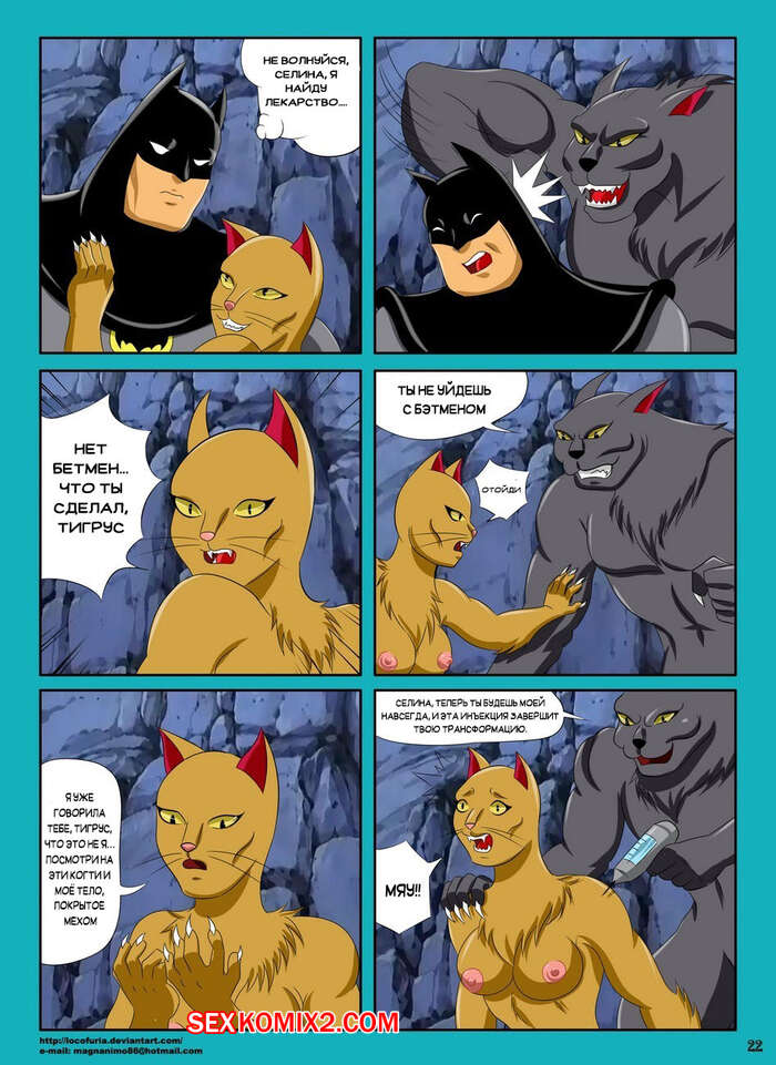 Порно комикс Batman. Кошачьи инстинкт. Feline Instincs Огромный парень кот схватил горячую блондинку и решил заняться ей. Она стал ее раздевать, но красотка отбивалась. В итоге кошаку удалось ее раздеть и выебать, после чего она сама стала кошкой.