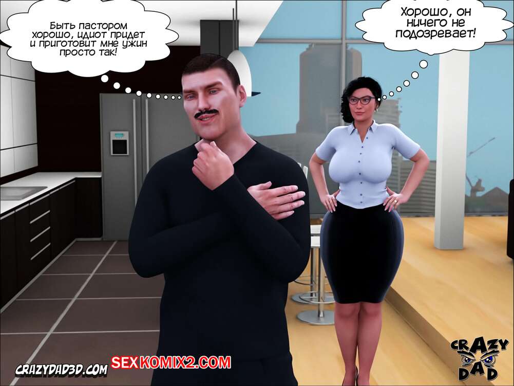 Порно комикс Жена проповедника. Часть 11. The Shepherd Wife. CrazyDad3D Горячая милфа брюнетка решила воплотить свою давнюю мечту в реальность. Она пригласила к себе домой незнакомца из ночного клуба, чтобы он приготовил им с мужем ужин и хорошенько их выебал.