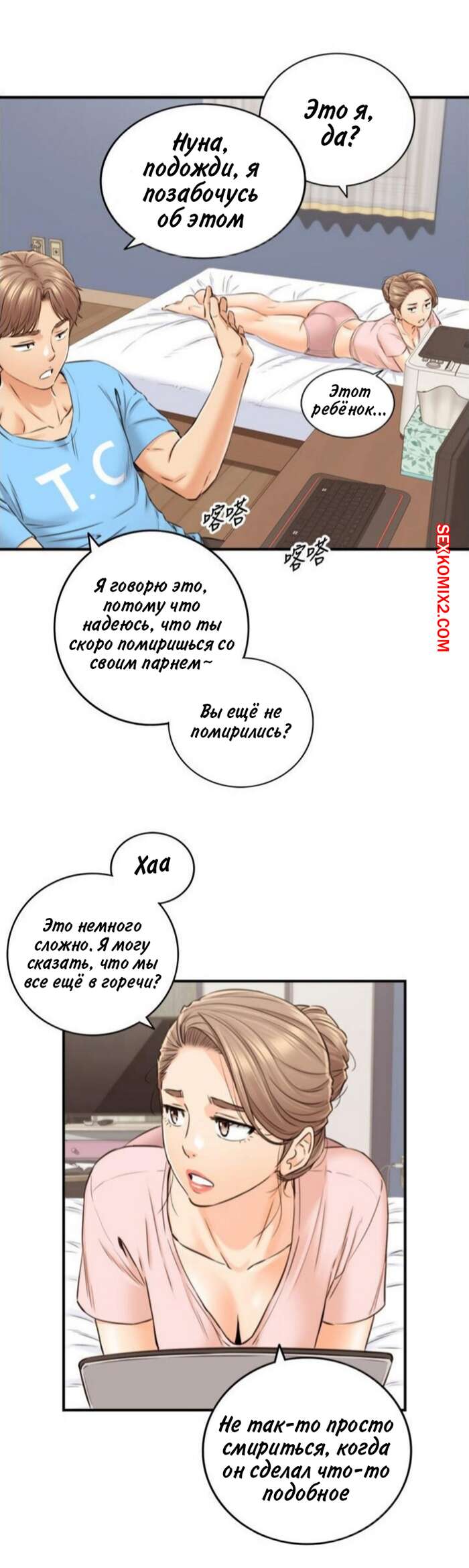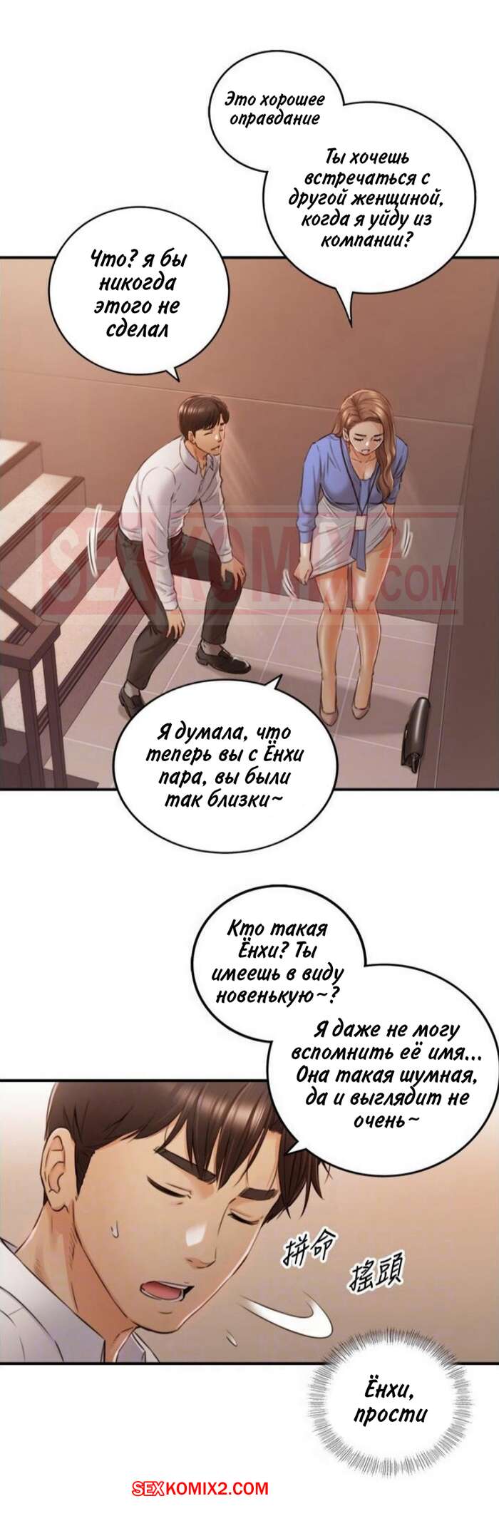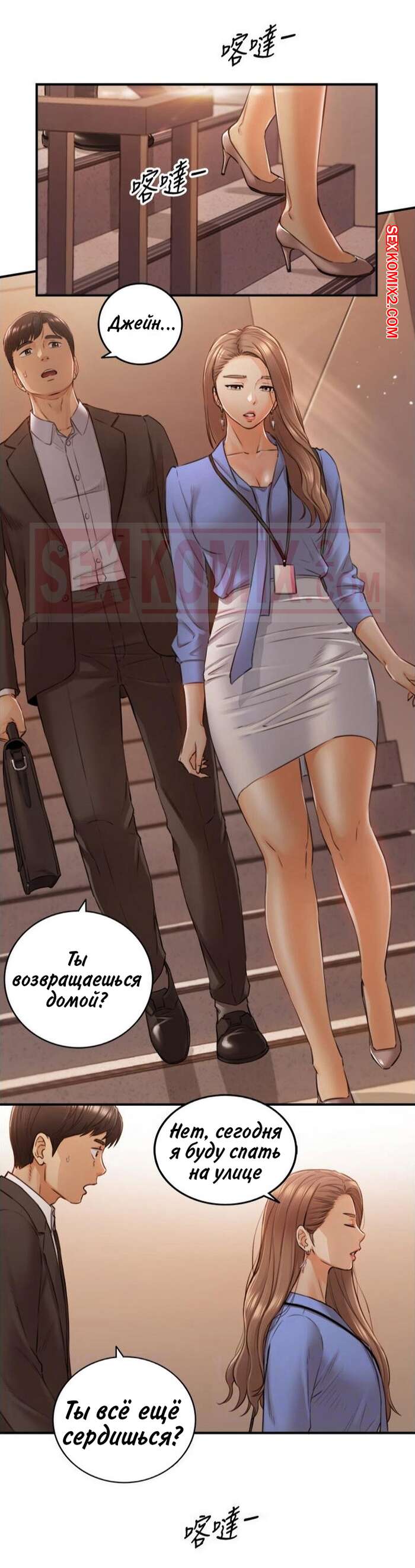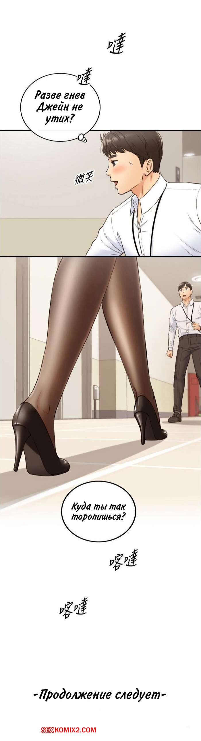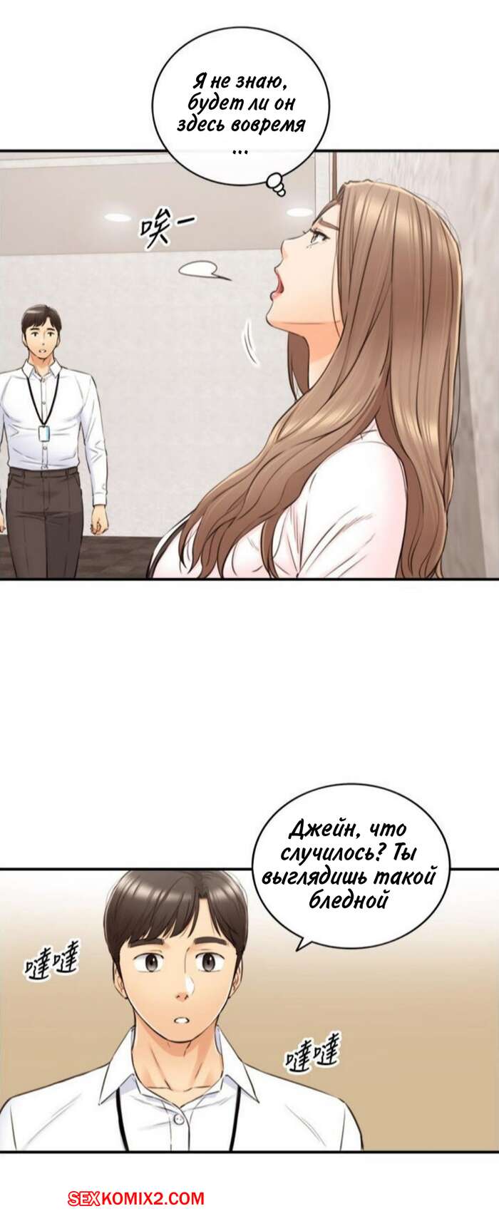 Порно комикс Молодой босс. Часть 99. Young boss Горячая красотка блондинка получала огромное удовольствие от ебли со своим коллегой на работе, но боялась, что их спалят. Она решила прервать их секс, а затем быстренько оделась и отправилась домой.