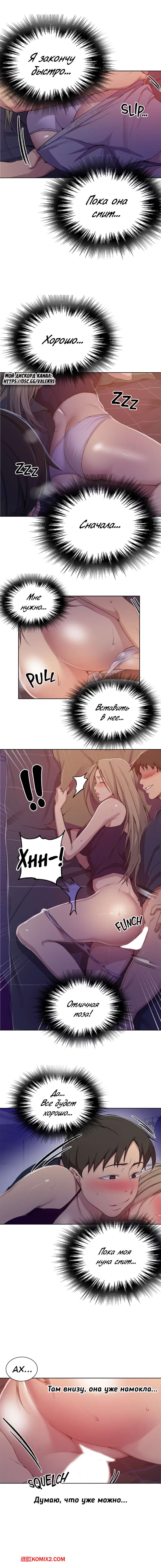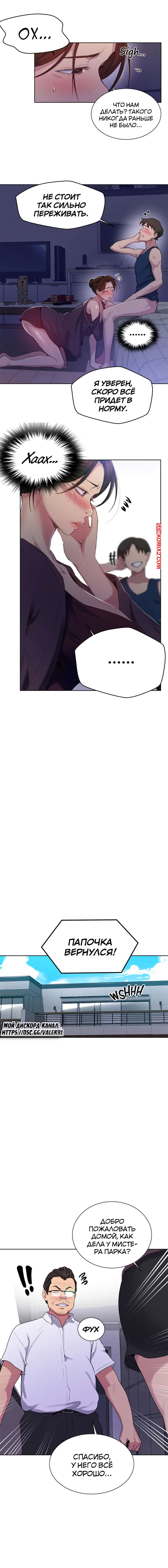 Порно комикс Тайное обучение. Часть 114. SecretClass. В дом вернулся дядя парня, это значит что трахать тетю ему нельзя. Пришлось идти в комнату приемной сестры.