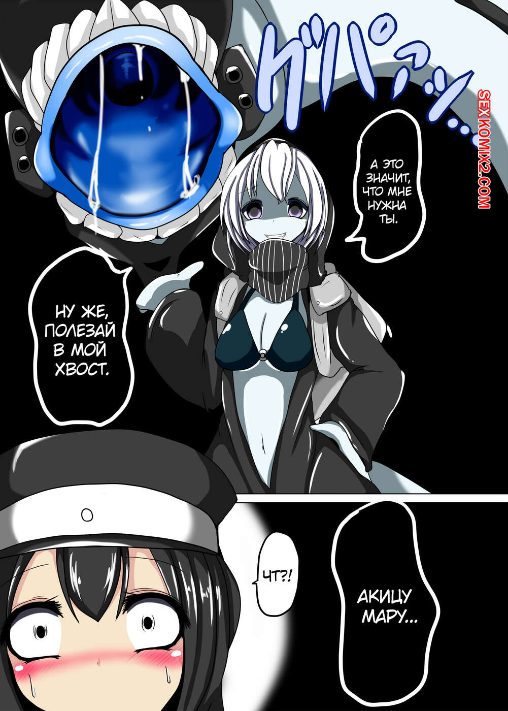 Порно комикс Senkan Rekyuu no Kindaika Kaishuu. Часть 1 Горячая сисястая блондинка настигла шикарную брюнетку, желая ее проглотить. Она заглотила ее и брюнеточка быстро оказалась внутри блондинки, которая получила сексуальное удовольствие.