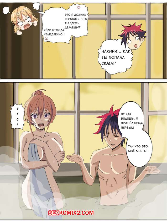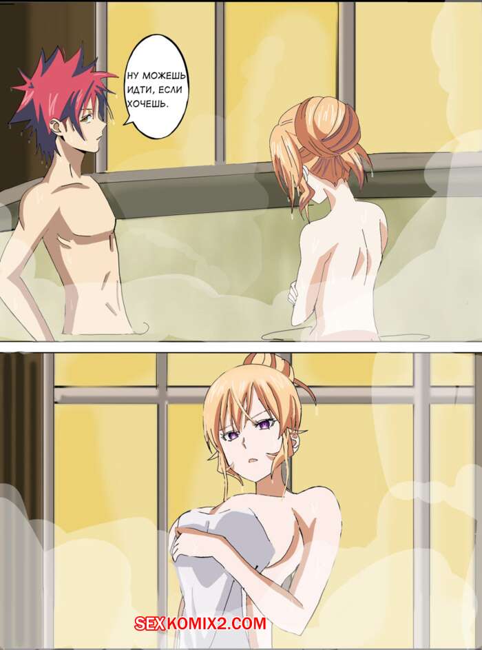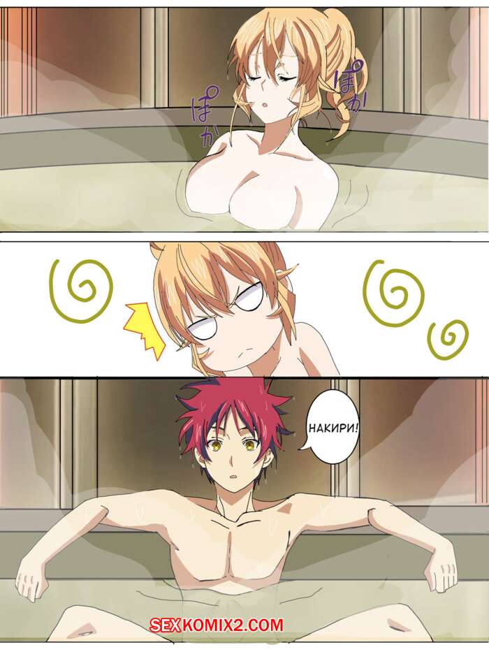 Порно комикс Горячий источник Сома х Эрина Парнишка расслаблялся с красоткой блондинкой в горячем источнике. Они решили повеселиться и стали страстно целоваться, после чего красотка встала раком перед парнем и дала ему себя хорошенько выебать.