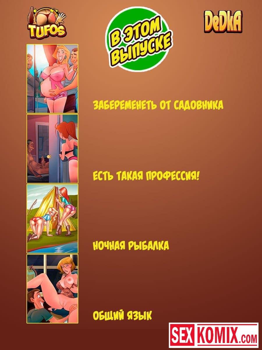 Порно комикс Весёлые эроистории. Часть 1. Это несколько порно истории о развратных людях, которые занимаются сексом. Одна из них о, девушке, которая влюбилась в своего садовника и трахнулась с ним. Пока муж был на работе, в конце концов она забеременела и родила, а муж даже и не подозревал. В другой истории сексуальная девушка увидела чернокожего парня с большим членом, и захотела заняться с ним сексом.