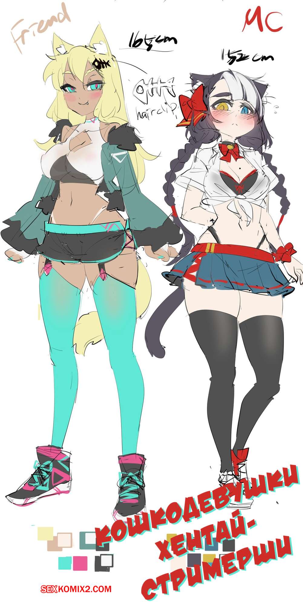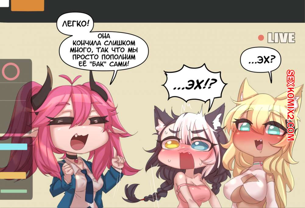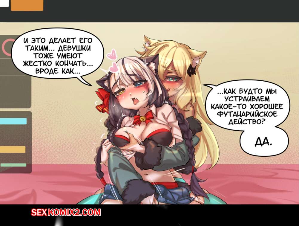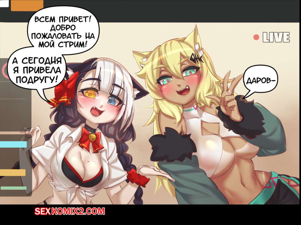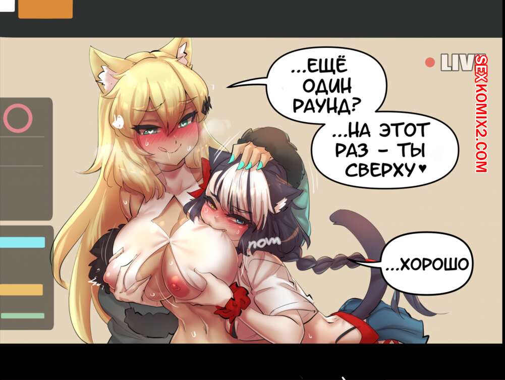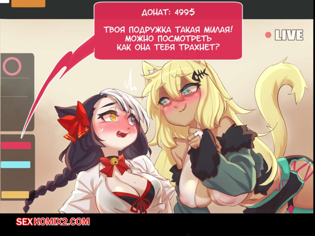 Порно комикс Девушкакошка, хентай стримеры. Cat Girl Hentai Streamers Две горячие красотки кошечки в сексуальных нарядах решили провести стрим. Они стали страстно целоваться и ласкать друг дружку, после чего разделись и устроили горячую лесбийскую еблю.