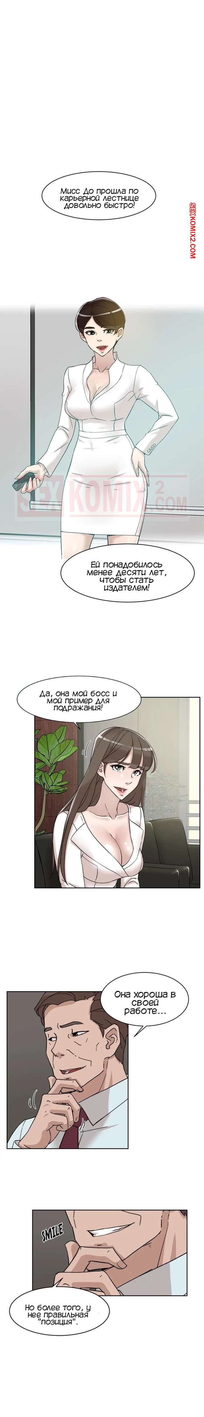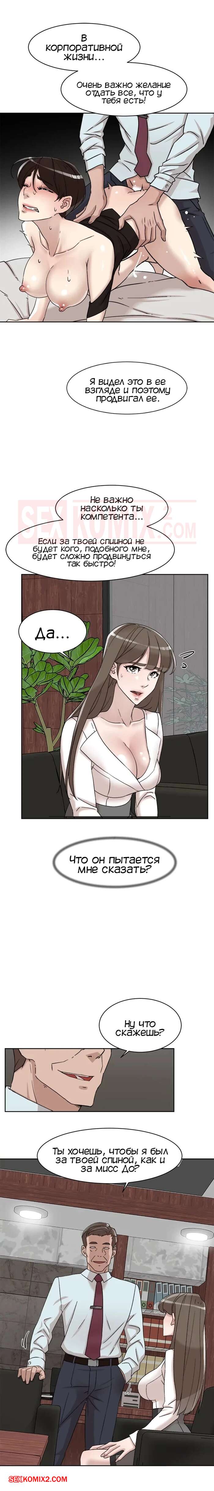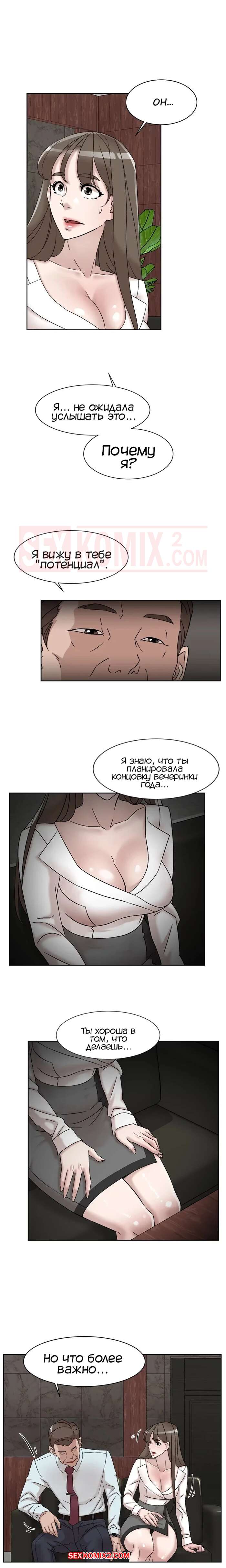 Порно комикс Её 4 размер. Часть 111. Her 4 Incher Босс пригласил горячую красотку брюнетку к себе в офис. Он стал рассказывать ей про свою старую помощницу, которая быстро поднялась по карьерной лестнице, трахаясь с ним, и предложил такие же условия и молодой девушке.