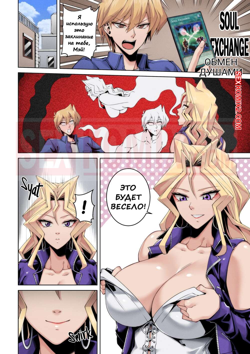Порно комикс Обмен душами. Youre Maine. YuGiOh. TSFSingularity Парнишка вселился в тело своей горячей подруги блондинки и решил этим по полной воспользоваться. Он разделся и стал ласкать свои сиськи, а затем и занялся пизденкой.