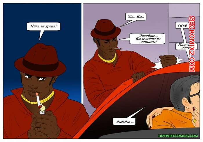 Порно комикс Годовщина Мужик поехал отпраздновать годовщину со своей женой блондинкой, но у черного парня были другие планы. Он уединился в тачке с красоткой и дал ей отсосать свой большой хуй, а затем хорошенько ее выебал.