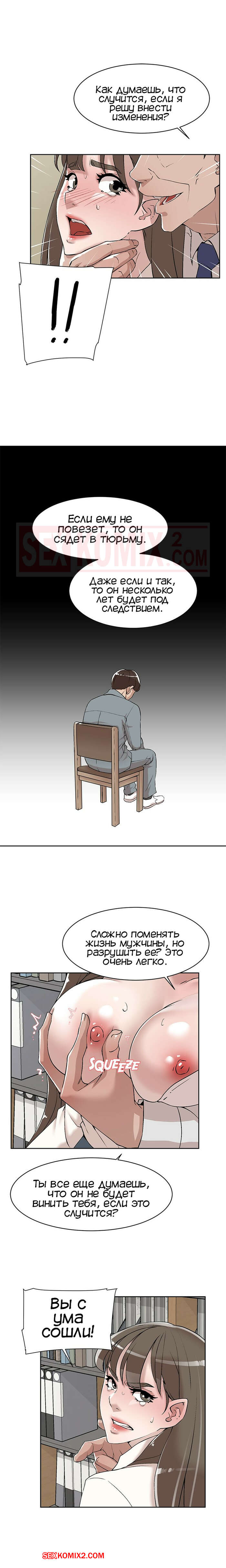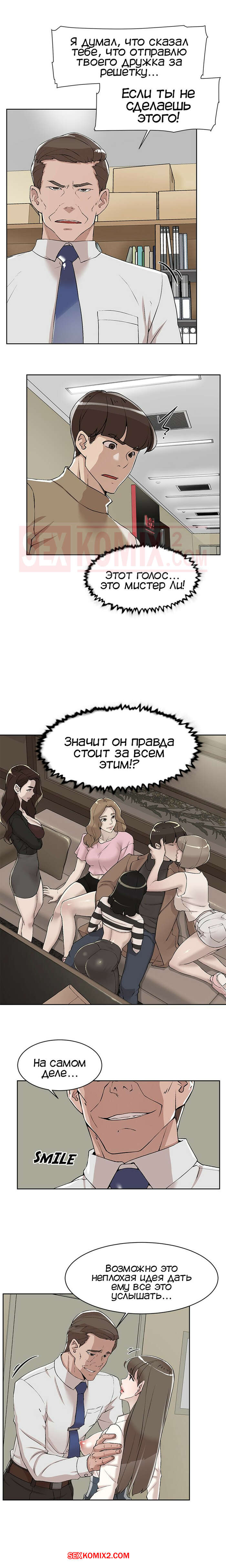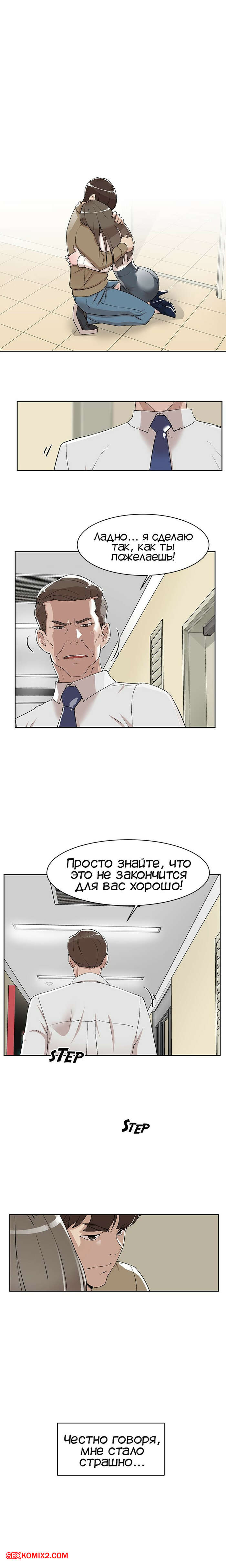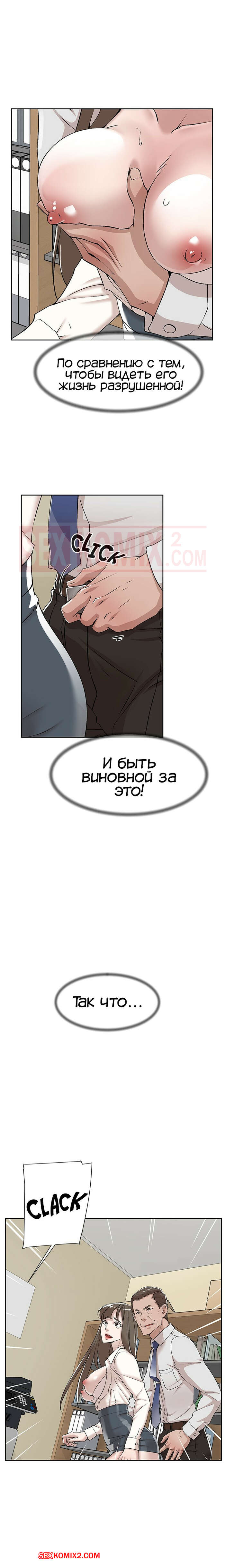 Порно комикс Её 4 размер. Часть 121. Her 4 Incher Парнишка пошел искать свою подругу, которая была закрыта в рабочей комнате с боссом. Он продолжал до нее домогаться и звать с ним ебаться, угрожая главному герою.