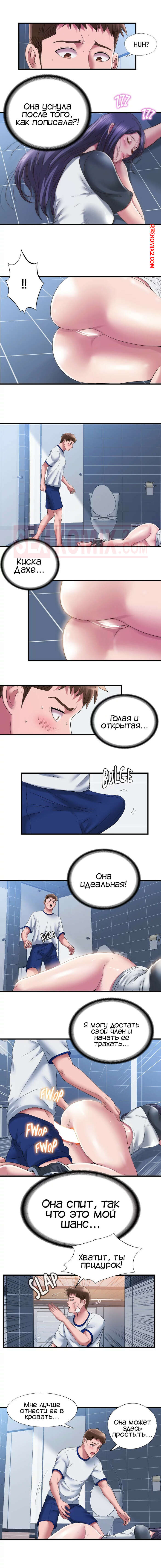 Порно комикс Жизнь бьет ключом. Часть 56. Water overflow Парень отвел горячую красотку брюнетку спать и собрался домой, но красотка попросилась в туалет. Ее долго не было и парень обнаружил ее на полу. Пьяная красотка стала доставать его член и раздеваться, чтобы дать парню себя выебать.