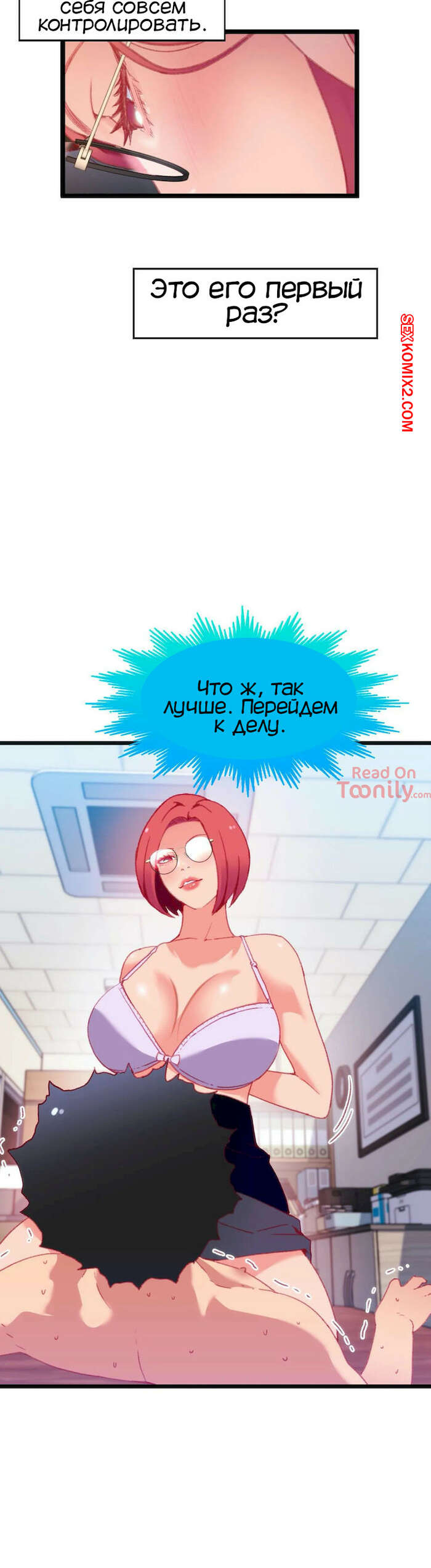 Порно комикс Игра с телом. Часть 11. The Body Game Горячая сисястая красотка завела парня к себе в кабинет. Она раздела его и стала ласкать, от чего парень просто сошел с ума и забыл про то, что он участвует в игре.