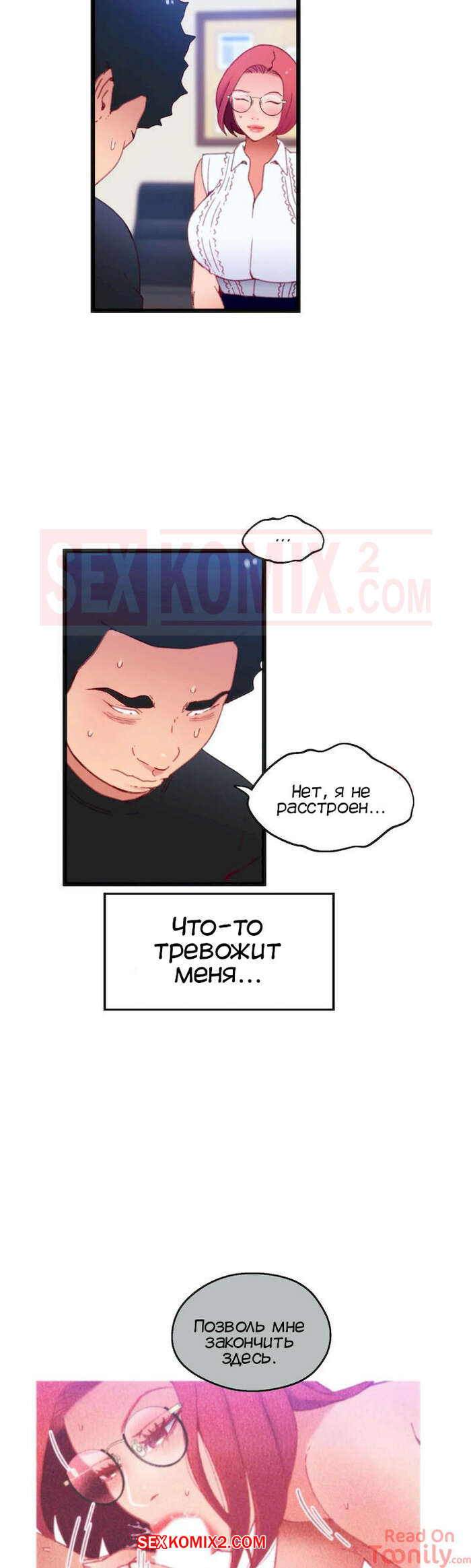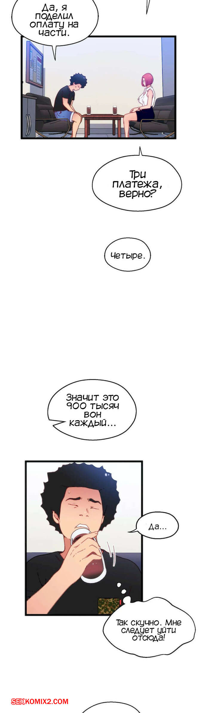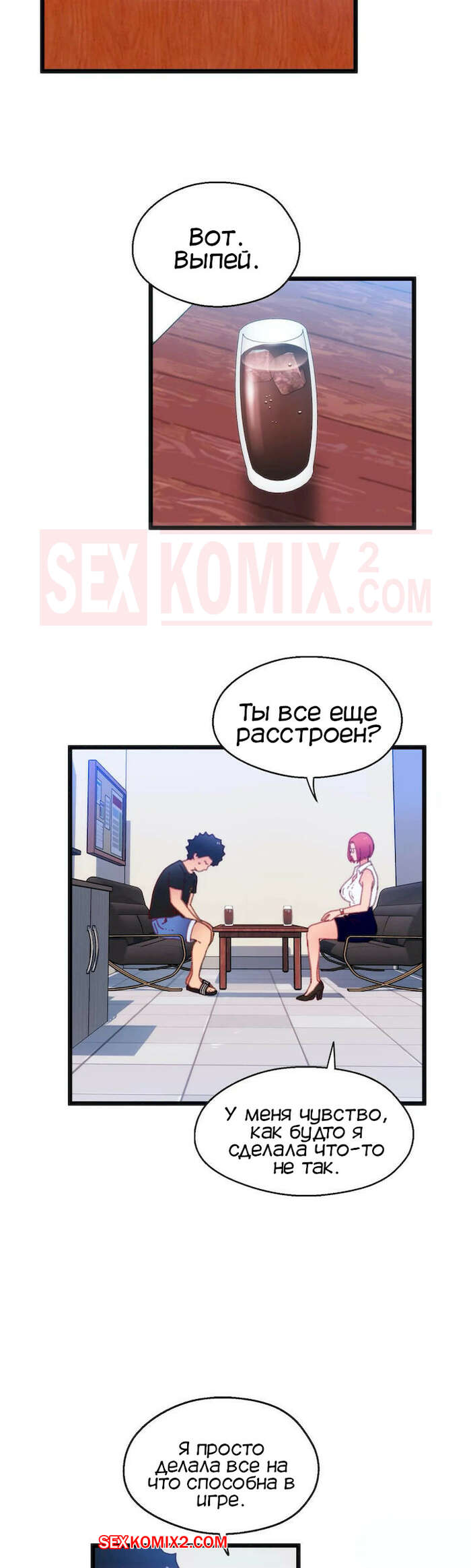 Порно комикс Игра с телом. Часть 12. The Body Game Горячая сисястая красотка закончила сосать большой хуй парня и решила с ним мило пообщаться. Она вошла к нему в доверие, так что парень без проблем выдал свой номер.