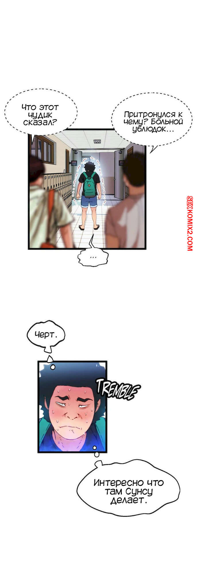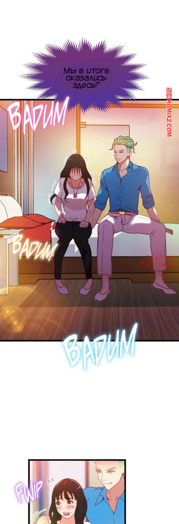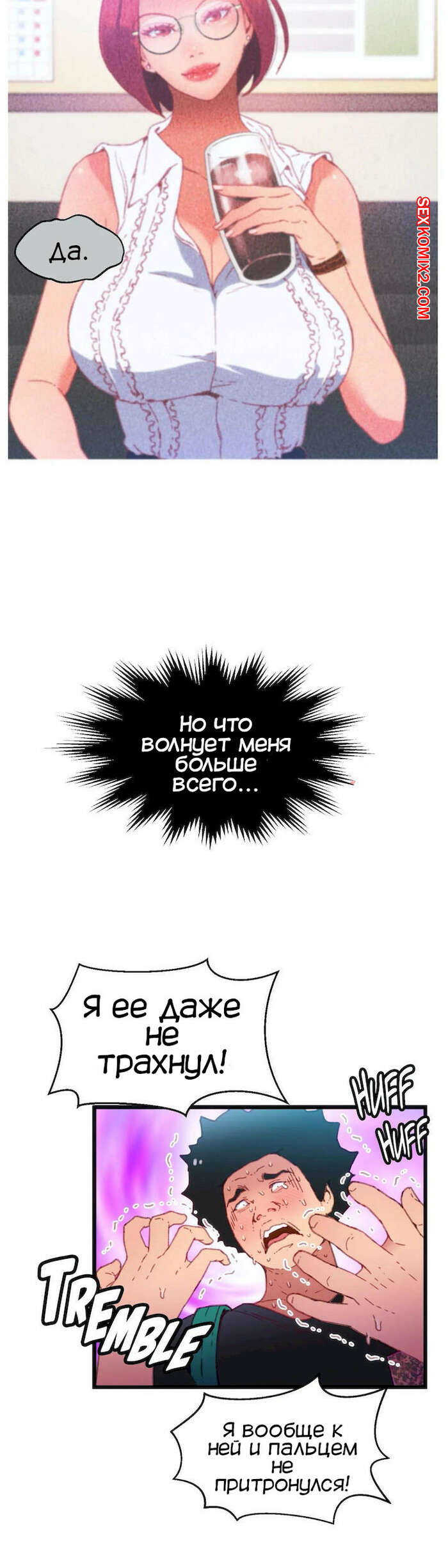 Порно комикс Игра с телом. Часть 12. The Body Game Горячая сисястая красотка закончила сосать большой хуй парня и решила с ним мило пообщаться. Она вошла к нему в доверие, так что парень без проблем выдал свой номер.