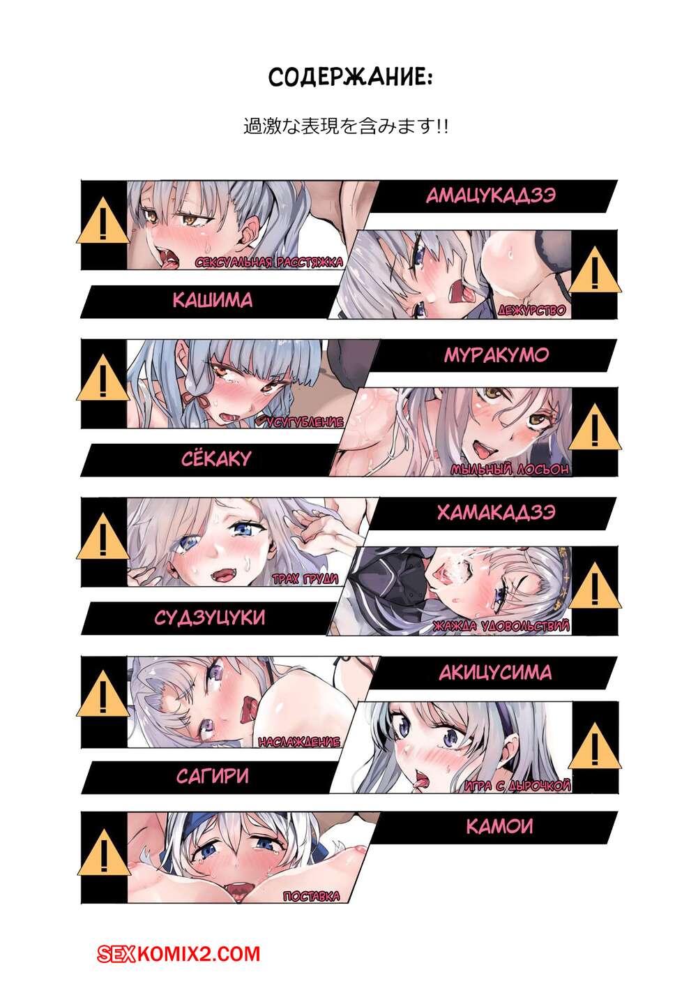 Порно комикс Подборка Серебристоволосых. Kantai Collection. Silver Hair Selection H Горячая сисястая красотка блондинка решила повеселиться со своим дружком. Она осталась перед ним в сексуальном белье и стала сосать его большой хуй, после чего дала ему себя хорошенько выебать.
