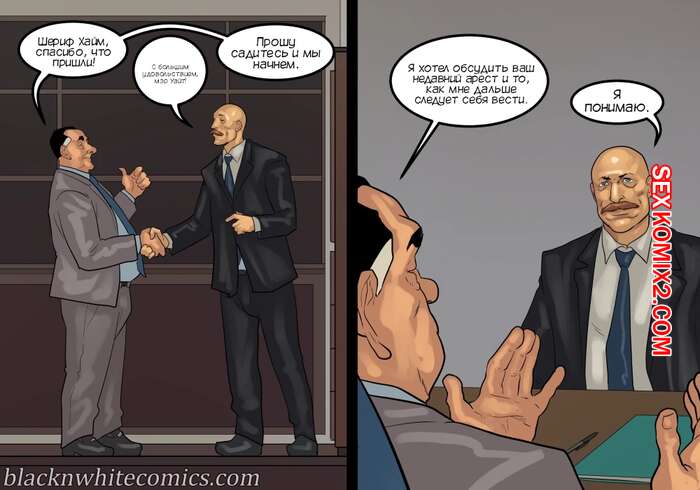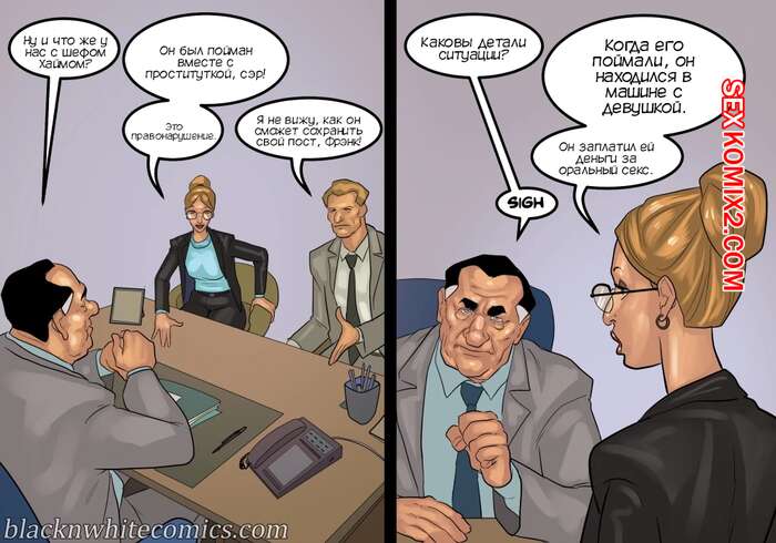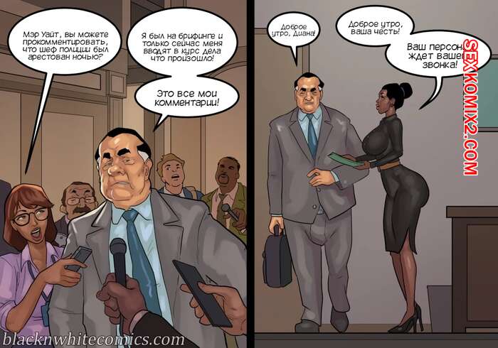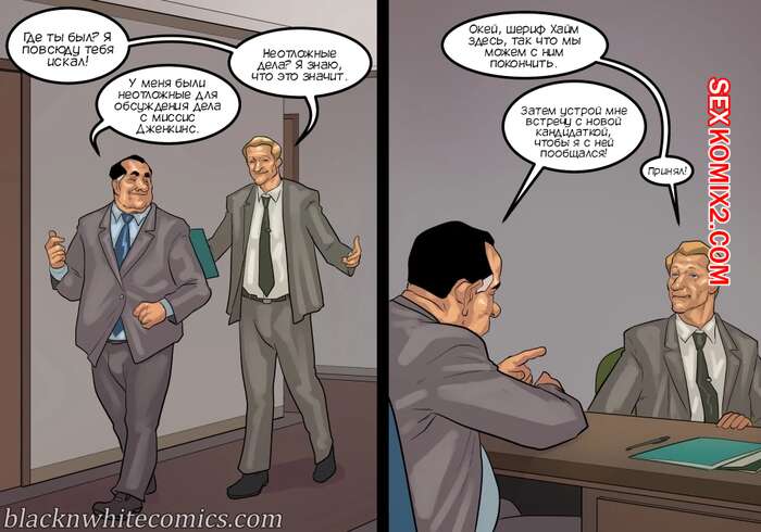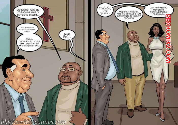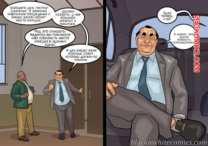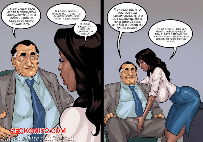 Порно комикс Мэр. Часть 5. The Mayor. BlackNWhiteComics Мужик решил повеселиться перед сном со своей женой блондинкой. Она уже собралась сосать его большой хуй, но внезапно уснула. К нему в кровать залезла его знакомая, которая решила побыть для него госпожой.