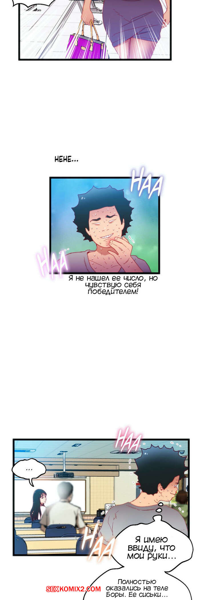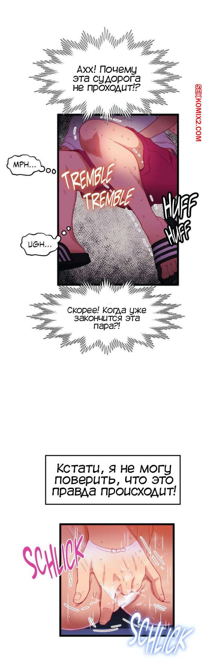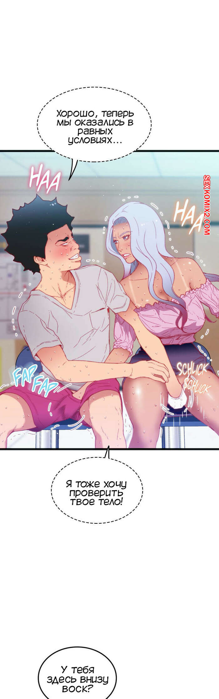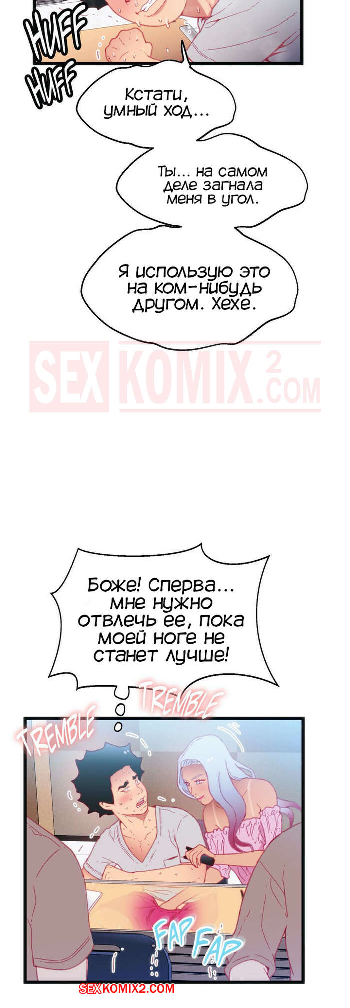 Порно комикс Игра с телом. Часть 16. The Body Game Красотка начала дрочить хуй парня во время занятия, чтобы узнать его номер. Он не знал, что с этим делать, поэтому решил засунуть ей в руки трусики и тоже ей подрочить.