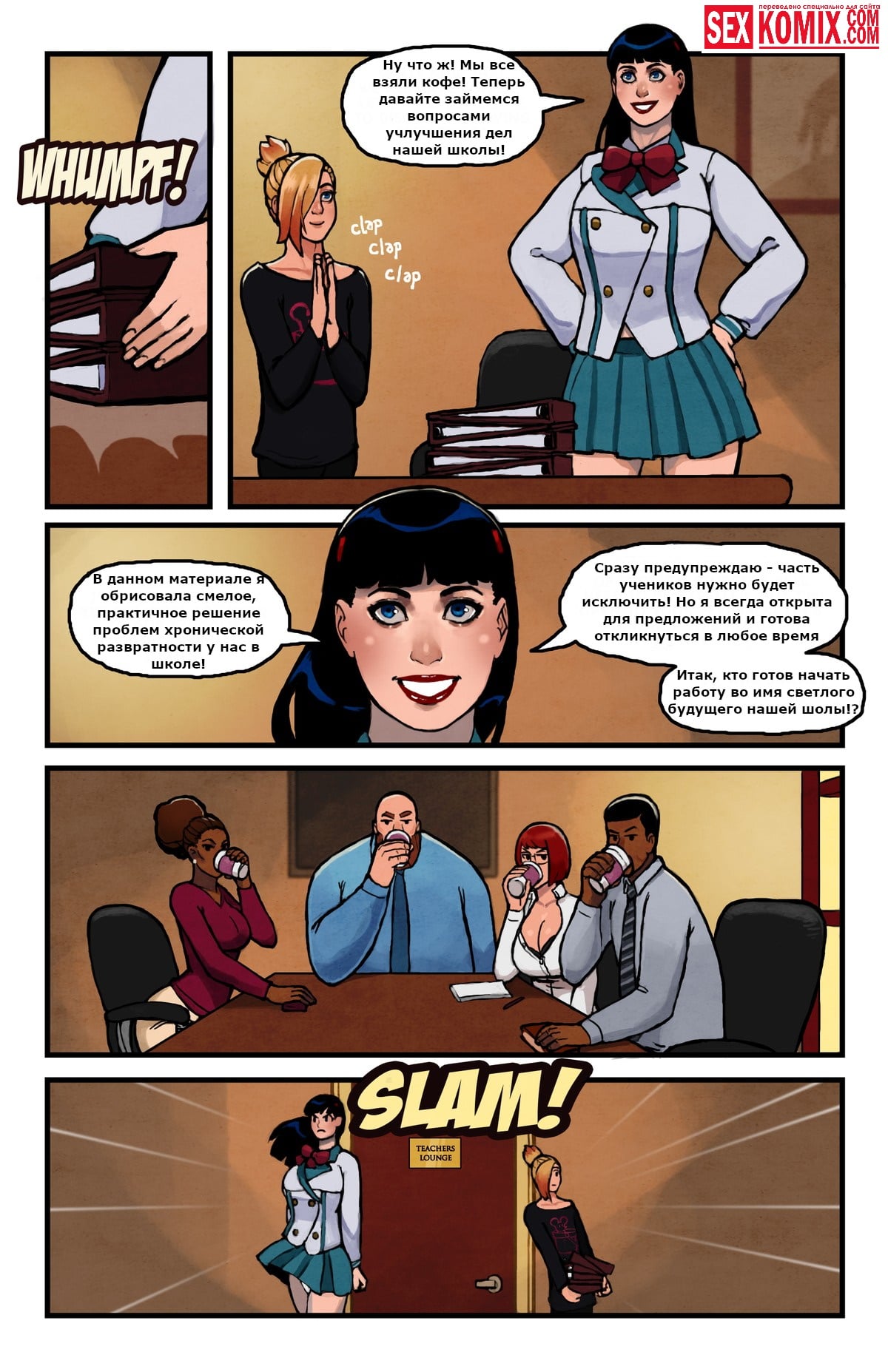 Порно комикс Романтический мир. Часть 3. Сексуальные студентки любят устраивать лесбийский секс, им нравится вылизывают друг другу киски. Но, однажды девушкам захотелось реальных мужских членов и они пригласили в гости двух парней из университета, чтобы устроить с ним оргию в общежитии. Когда парни пришли, девушки сняли с них штаны и начали отсасывать члены, после этого позволили себя трахнуть.