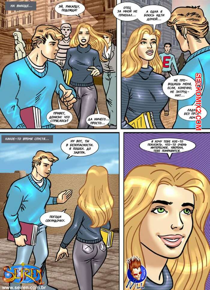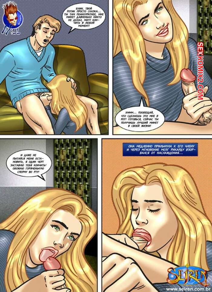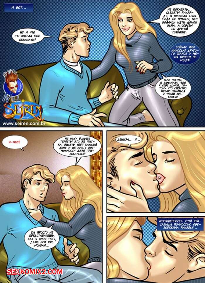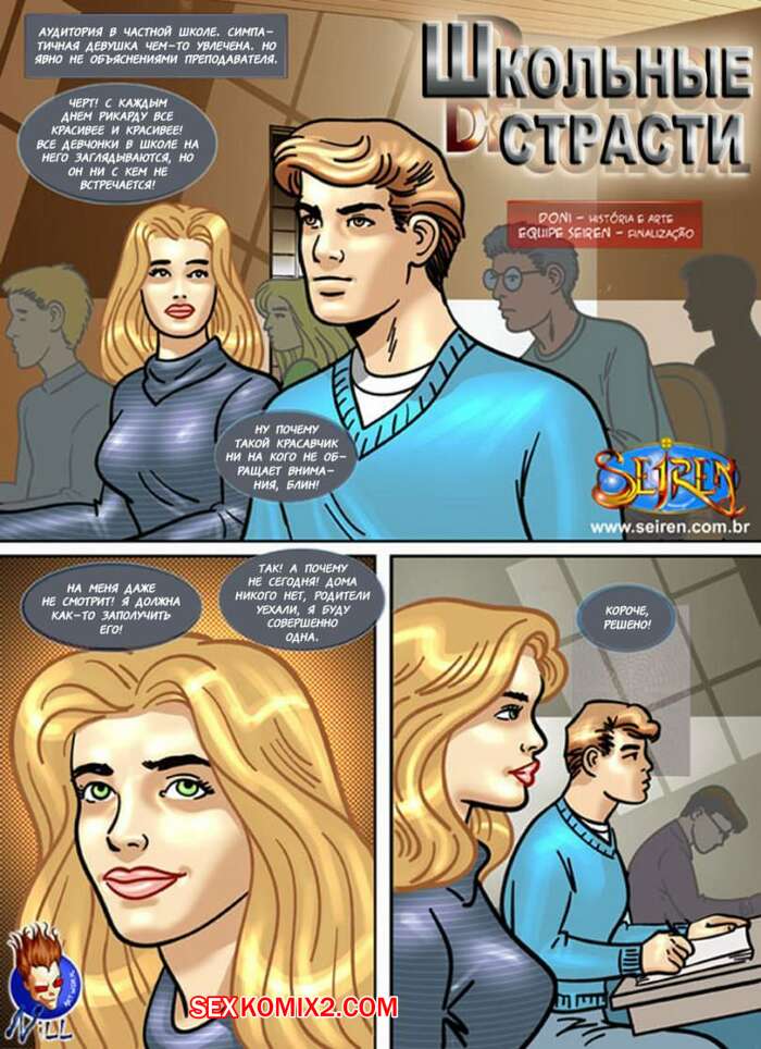 Порно комикс Школьные страсти. Seiren Молодая горячая красотка блондинка решила повеселиться со своим дружком после школы и пригласила его к себе. Девушка разделась и стала сосать большой хуй парня, после чего дала ему выебать себя в пизду и задницу.