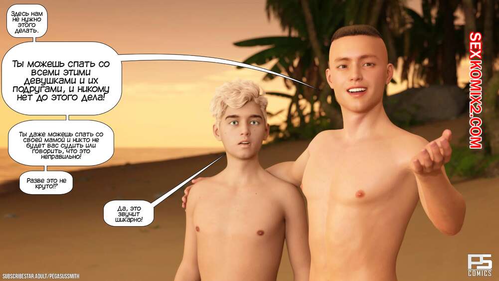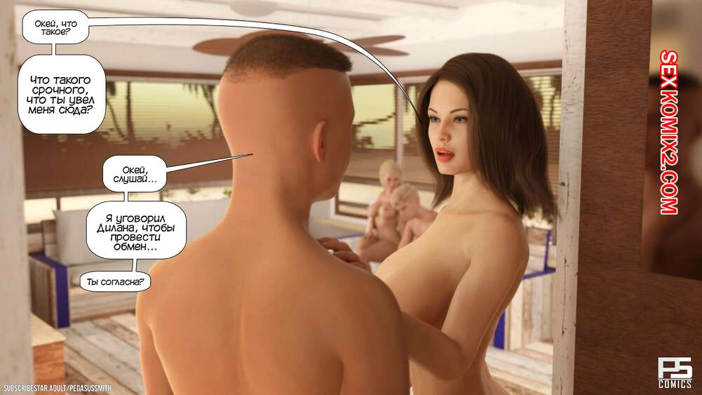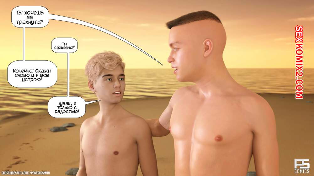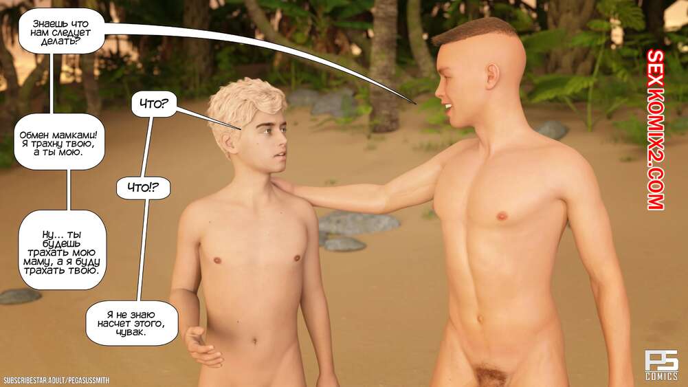 Порно комикс Нагишом. Нудистский курорт. Часть 9. Au Naturel. Pegasus Smith Два парня решили обсудить своих мамок и придумали план, как устроить обмен ими. Один из парней рассказал об идее своей сисястой мамке и она была только рада заняться групповой еблей.